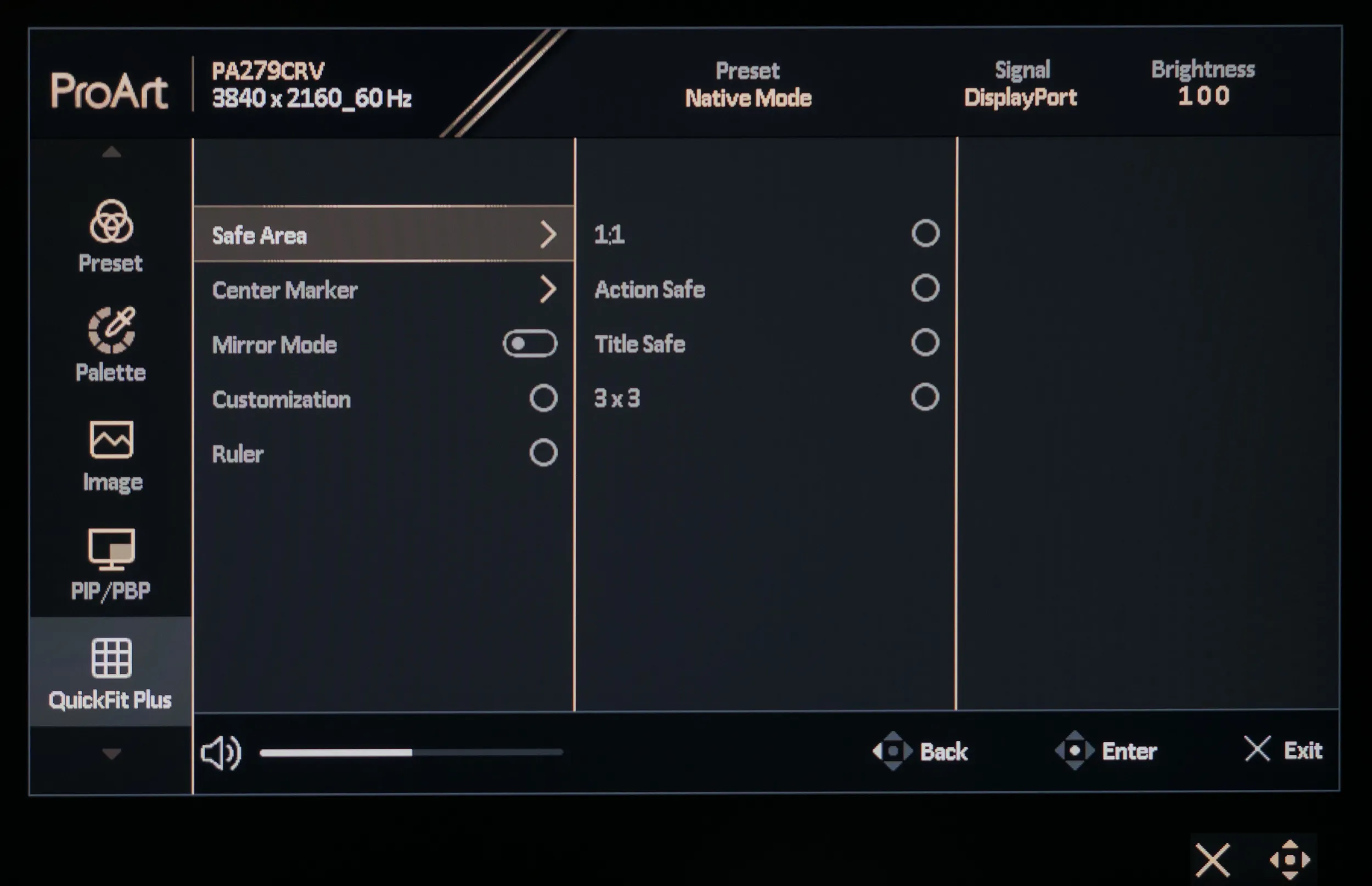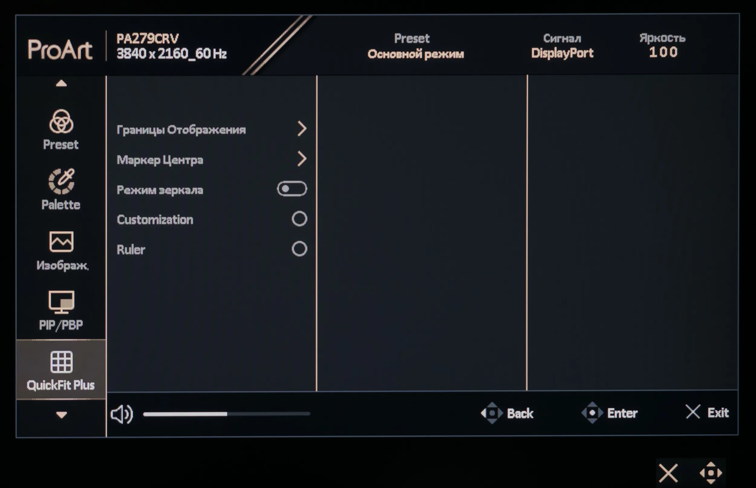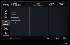 В арсенале монитора также присутствует усовершенствованная технология QuickFit Plus (набор настраиваемых сеток на экране монитора), выбор режимов работы встроенного скалера, а вот возможности проведения аппаратной калибровки через встроенный LUT самого монитора в PA279CRV вы не встретите – эта эксклюзивная возможность досталась более серьёзным и дорогим моделям в линейке ProArt. Всё как обычно.