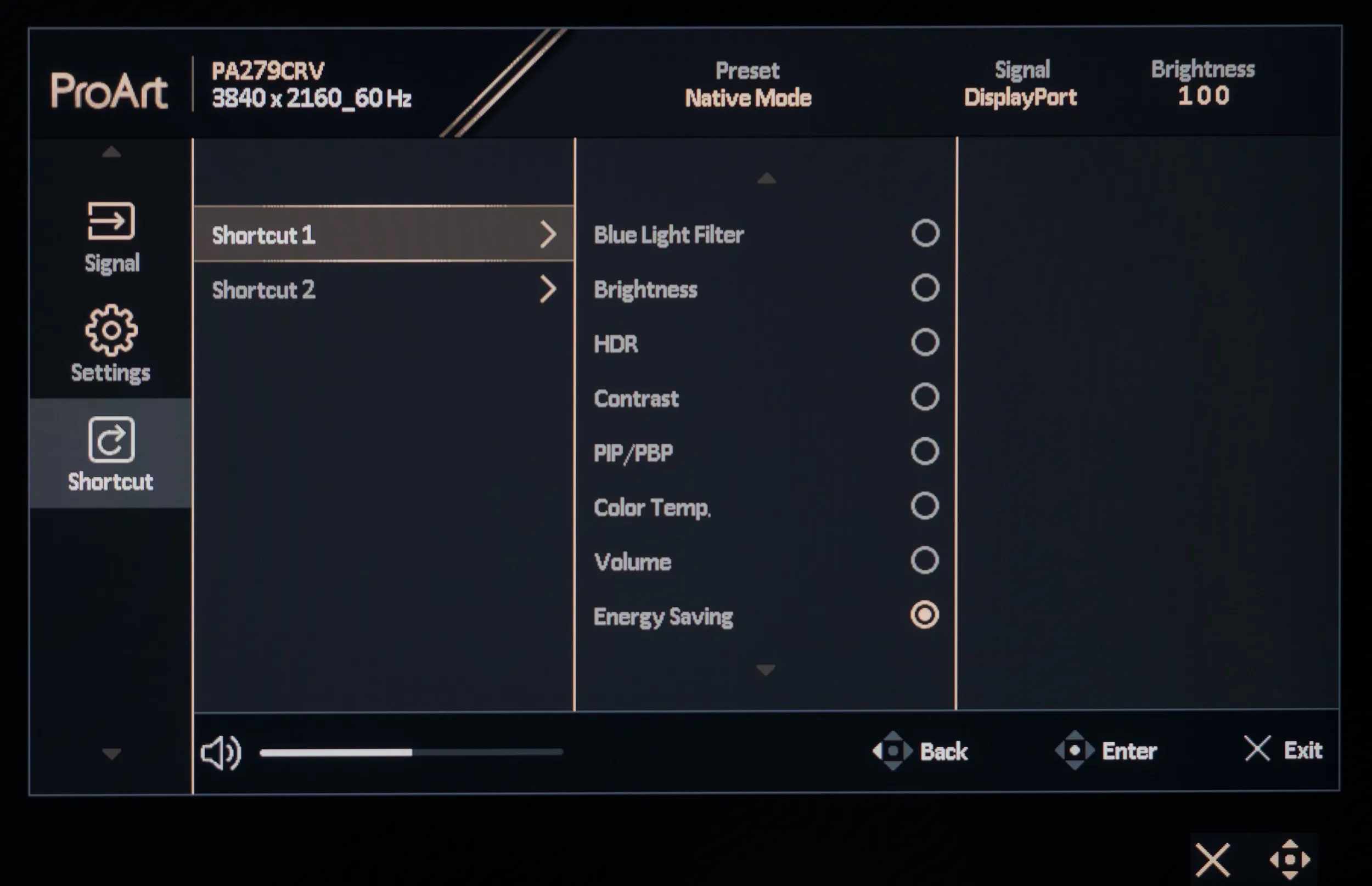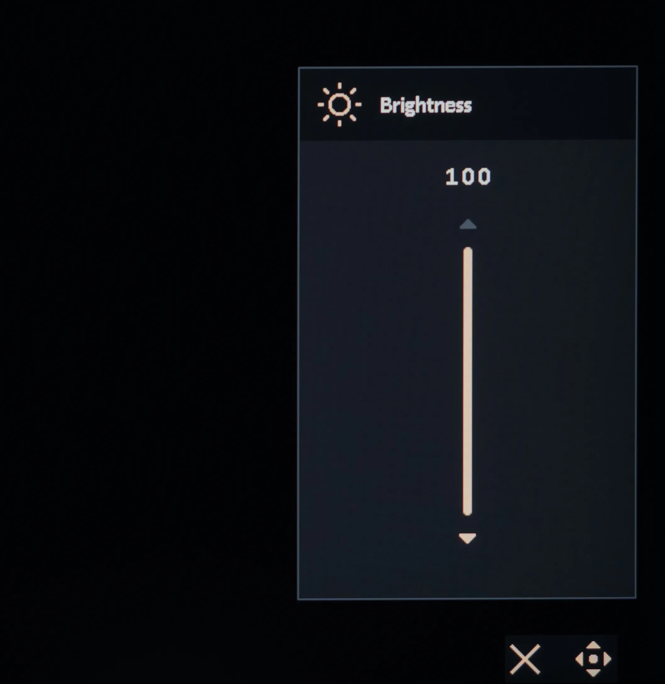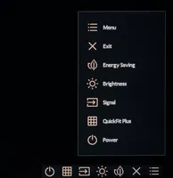 При нажатии на джойстик управления на экране сразу возникает основное меню. С помощью двух физических клавиш, с настройками по умолчанию, можно получить быстрый доступ к регулировке яркости и настройках Energy Saving. В дальнейшем функции можно выбрать самостоятельно.
