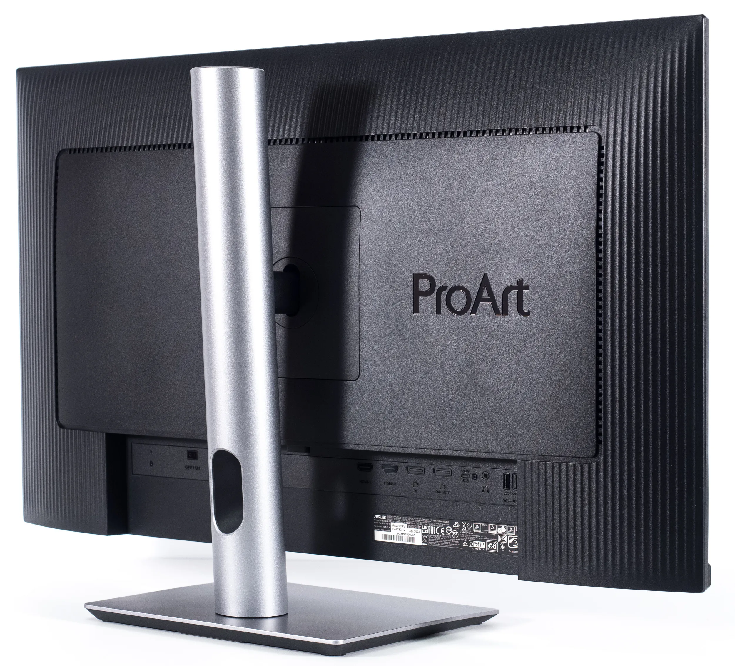 Дизайнеры отказались от некого подобия линеек, размещённых на самых разных поверхностях у предшественников новинки из линейки ProArt. К физическим клавишам на лицевой панели добавили 5-позиционный джойстик, центральная стойка приобрела новые формы и стала походить на оную в некоторых решениях Dell и LG.