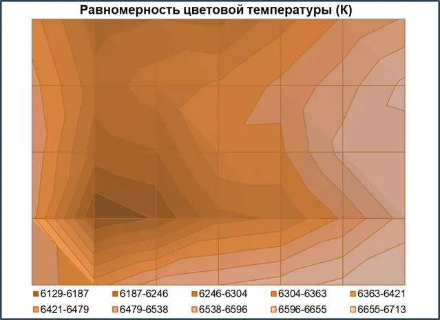 Теперь, наконец, перейдём к рассмотрению равномерности цветовой температуры на всей площади экрана.