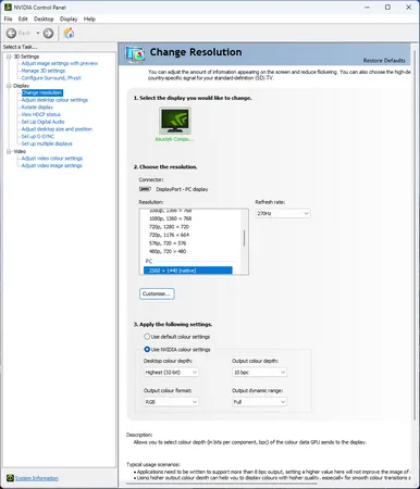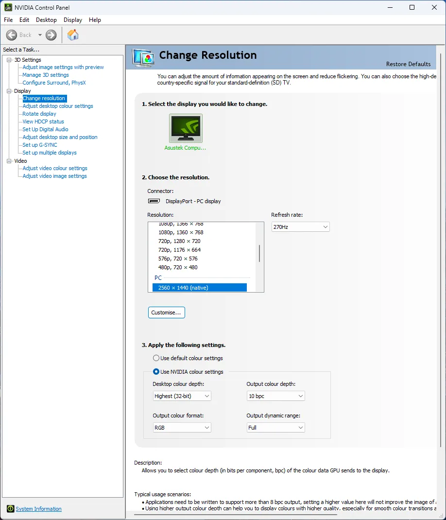 При подключении по DP 1.4 с поддержкой DSC и HBR3 модель может работать в псевдо 10-битном режиме на частоте вплоть до максимальных 270 Гц и полноценно поддерживает HDR без снижения дискретности.