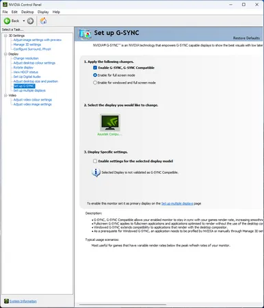 Отдельно отметим, что монитор ASUS ROG Strix XG27ACMG официально сертифицирован как AMD FreeSync Premium, что говорит о полной поддержке открытого Adaptive-Sync и, безусловно, подразумевает беспроблемную работу с NVIDIA G-Sync в режиме Compatible, что нами было подтверждено при фактическом тестировании новинки. Проблем не возникло, всё работает, но исключительно в диапазоне 48-270 Гц, а в сочетании с ELMB диапазон опускается до 144-270 Гц.