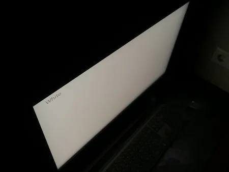 По фотографиям можно наблюдать появление пелены на трети-четверти изображения c выраженным желто-оранжевым паразитным оттенком (особенность использования красного фосфора в качестве модификатора спектра подсветки матрицы) или менее выраженным холодным оттенком при взгляде на монитор с другой стороны.