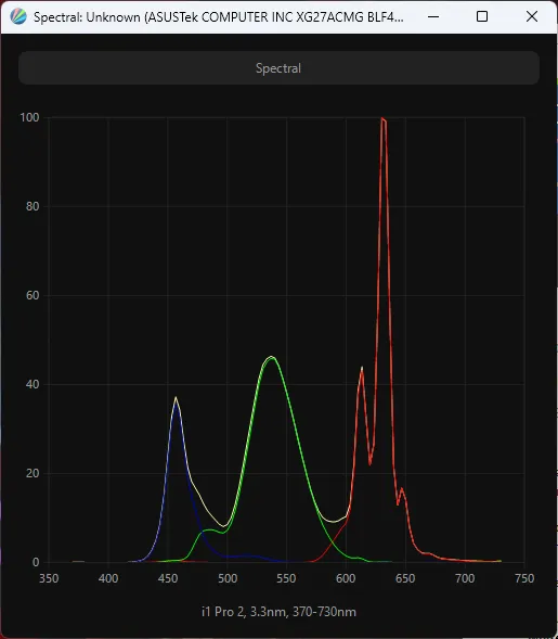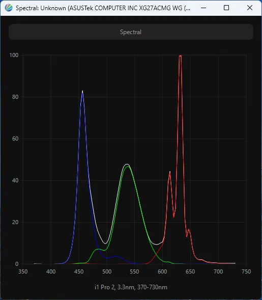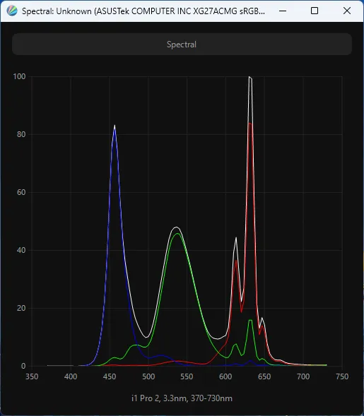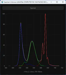 В случае с XG27ACMG контрастность в данном режиме не снижается — гамма-кривые сохраняют свой прежний вид, что говорит о том, что нагрузка на глаза будет снижена только за счёт изменения цветовой температуры и уже выявленного снижения цветовой насыщенности (ЦО) до 125% sRGB.