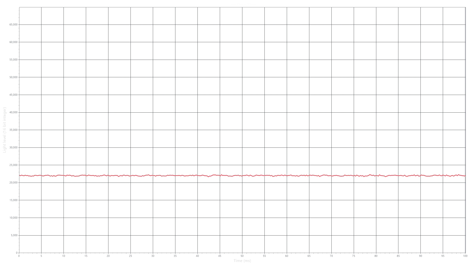 Для монитора заявлена технология Flicker-Free. В ходе тестирования было подтверждено, что монитор действительно обходится без использования ШИ-модуляции (или применена очень высокая частота в несколько кГц). Выше продемонстрированы результаты аппаратных замеров на уровень пульсаций. Даже при 0% яркости пульсации находятся в допустимых пределах и не могут влиять на усталость глаз пользователя. Полноценный же ШИМ в его истинном виде — отсутствует.
