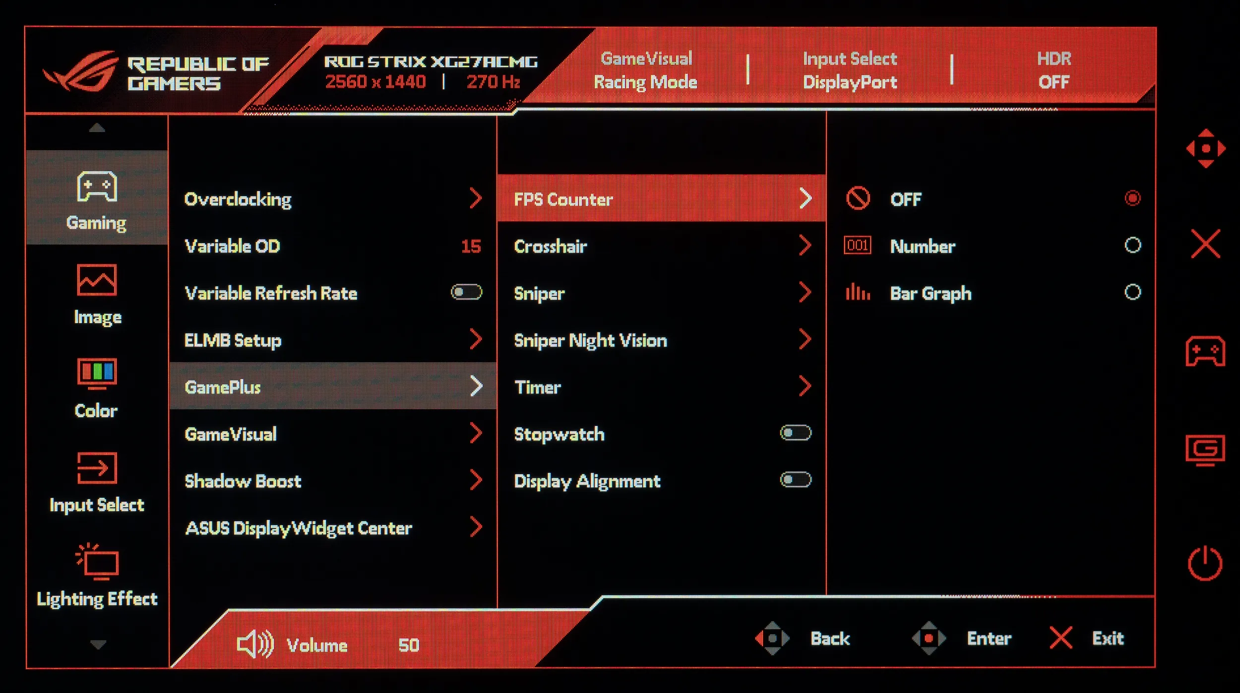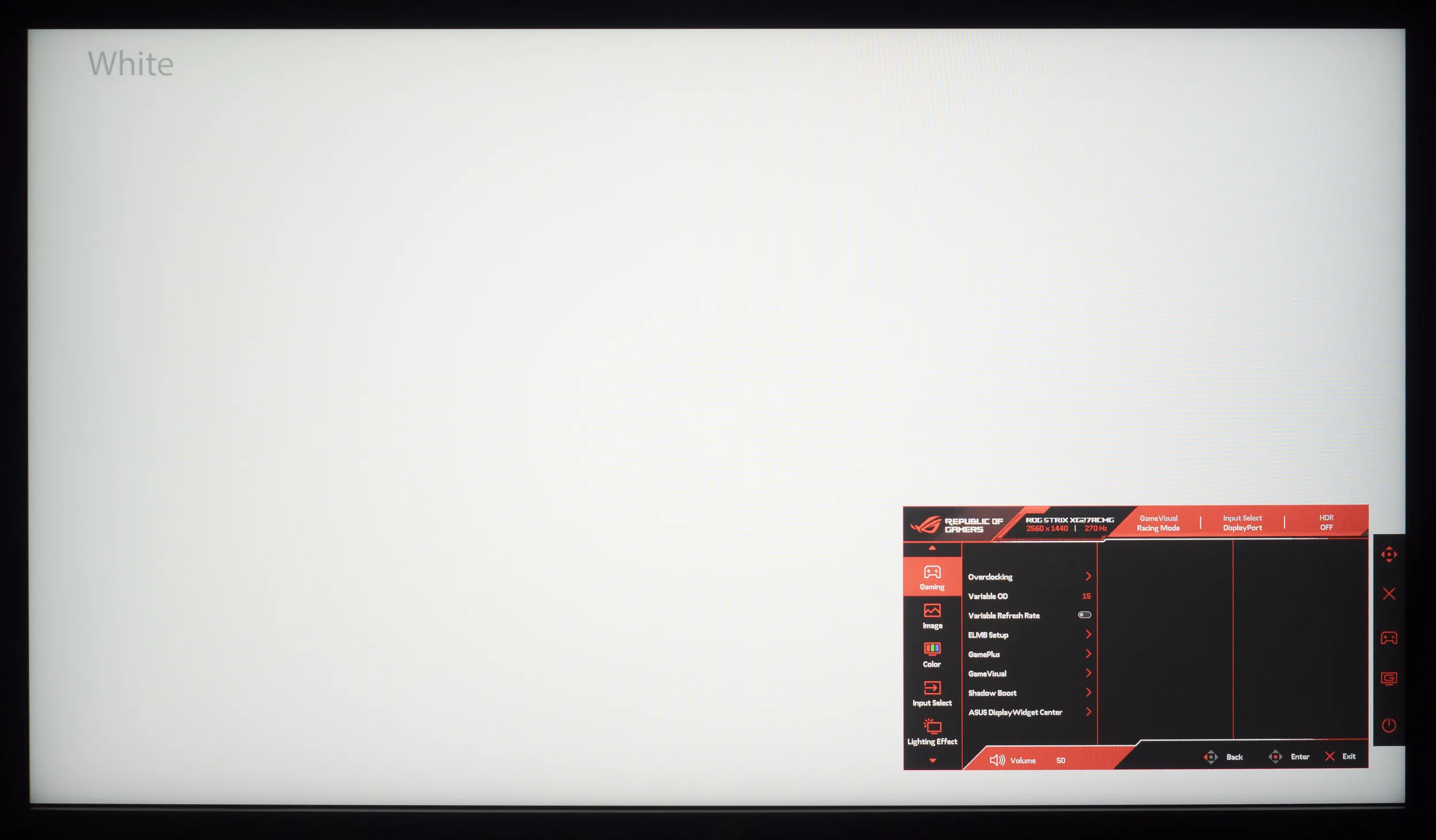 У новинки ASUS отсутствует датчик внешней освещённости для автоматической регулировки яркости, а в меню есть несколько дополнительных параметров, напрямую влияющих на точность цветопередачи и качество картинки в целом. В случае с XG27ACMG мы решили посмотреть на влияние функций Shadow Boost и Gamma.