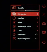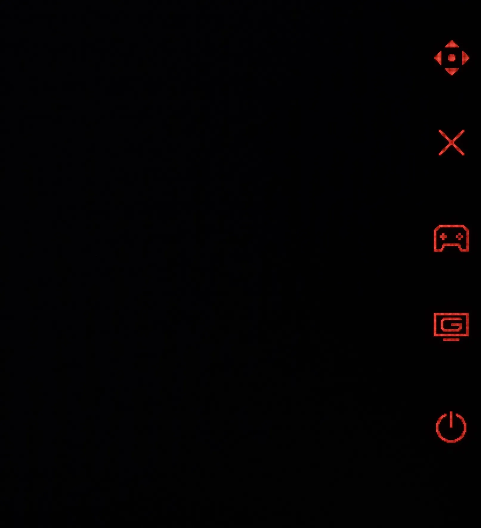 При нажатии на джойстик управления на экране сразу возникает основное меню. Быстрый доступ с помощью двух физических клавиш можно получить (при настройках по умолчанию) для выбора режимов GameVisual и функций GamePlus. А для вывода блока с подсказками достаточно нажать вторую клавишу сверху.