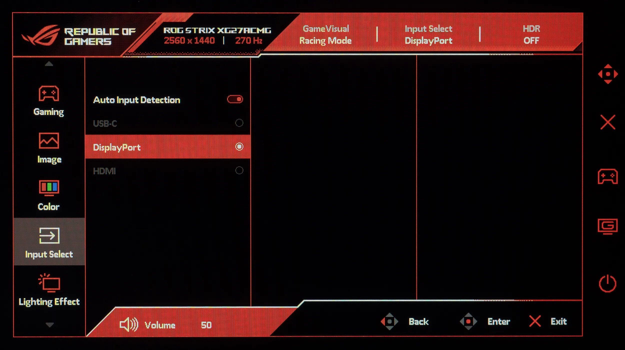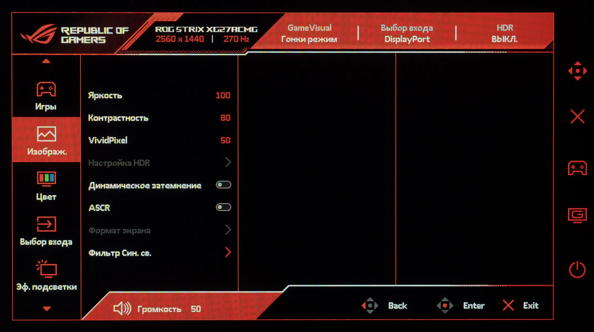 Встроенная акустическая система в XG27ACMG не используется, как и нет датчика внешней освещённости, который можно найти в некоторых продуктах серии ROG.