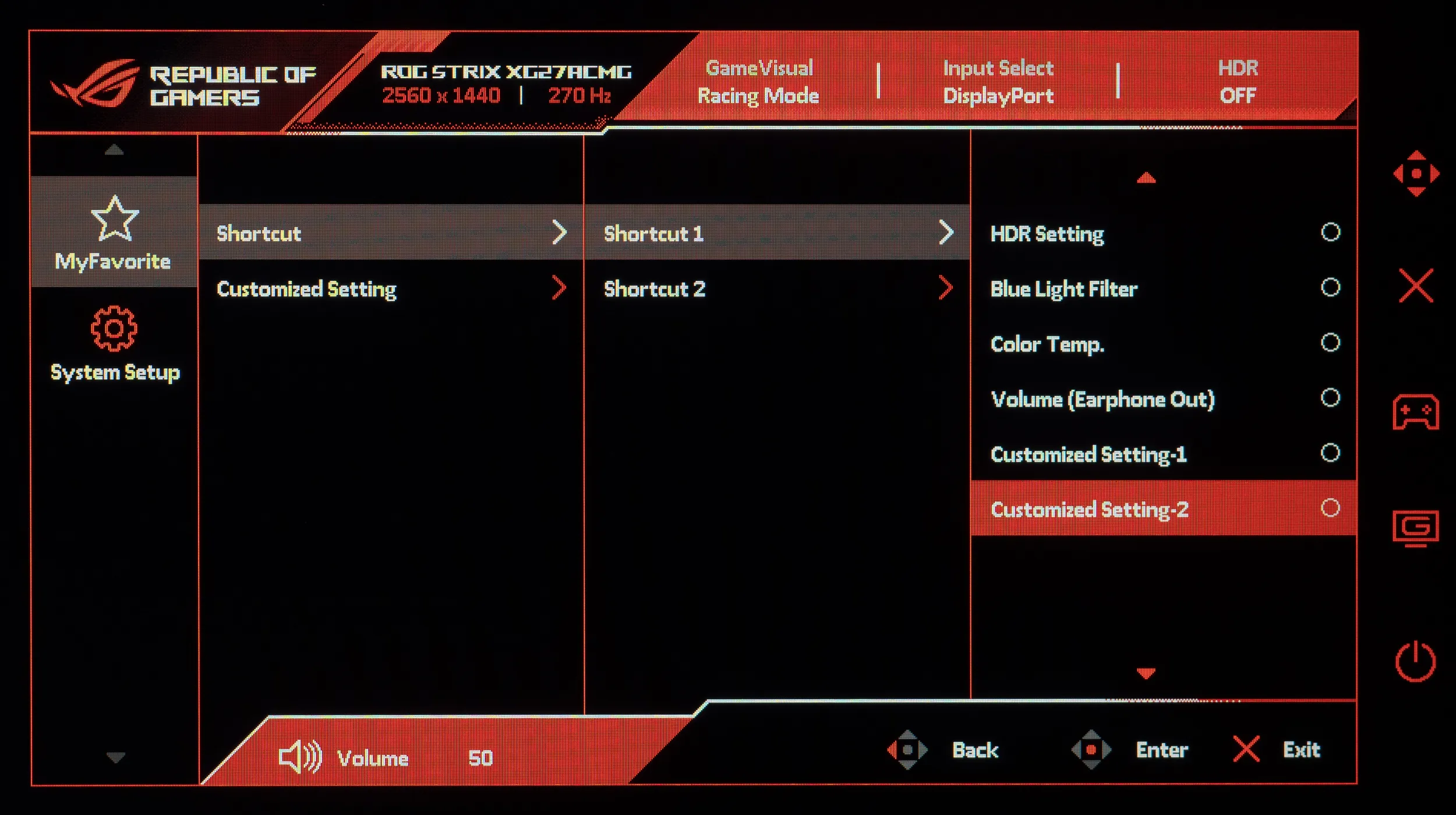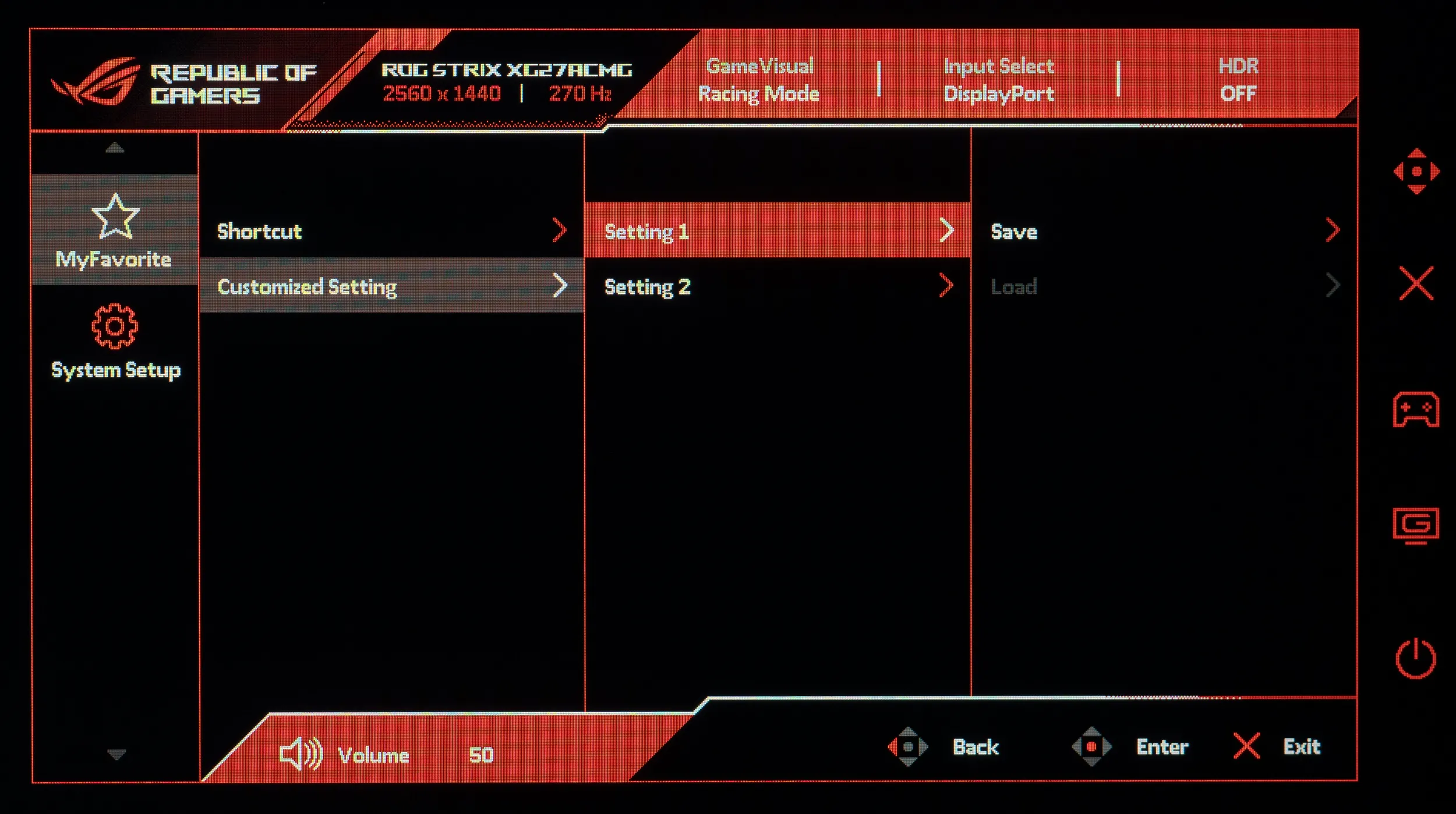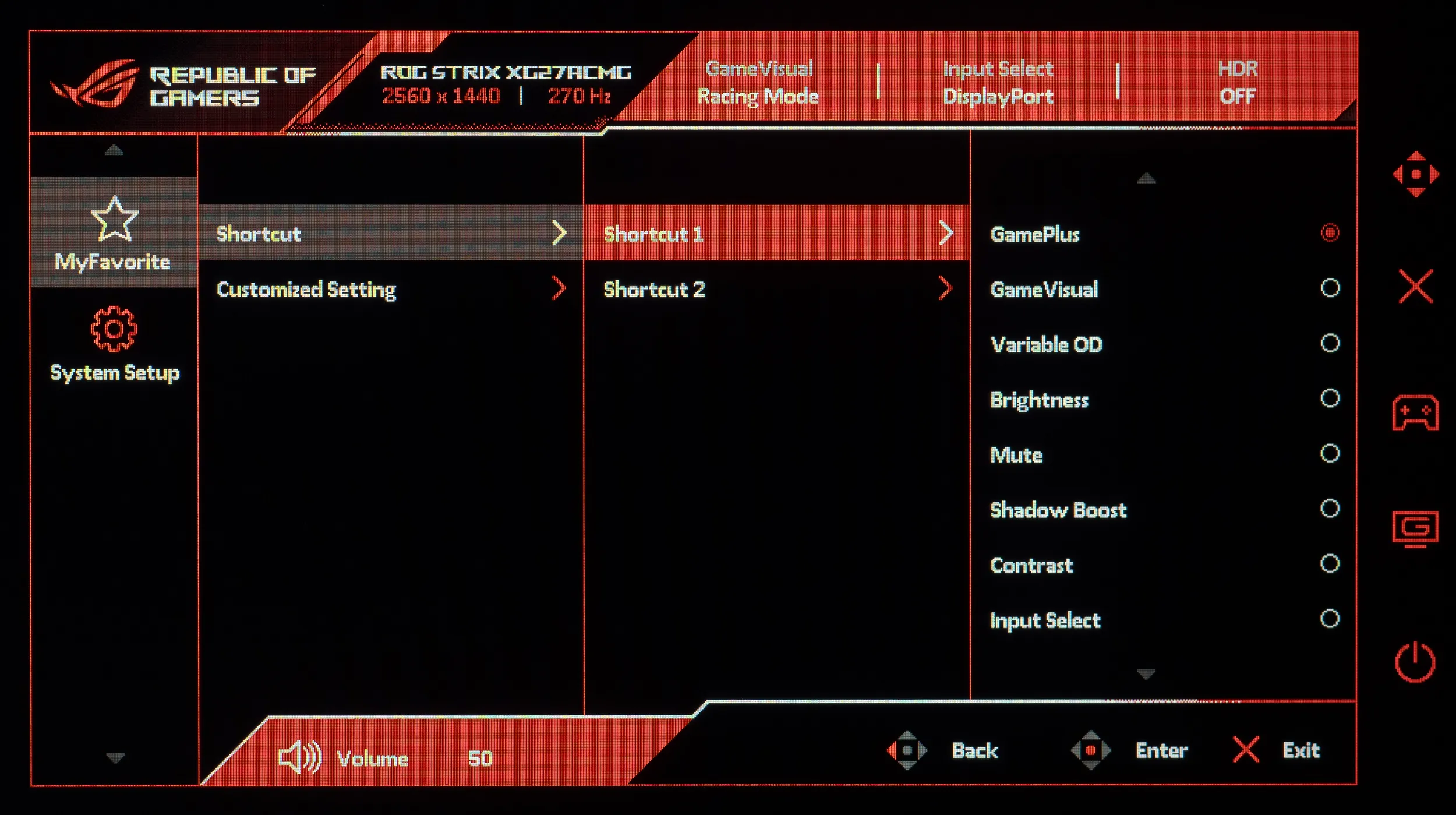 В новом XG27ACMG используется привычная по многим другим мониторам серий PB|PG|MG|VG|XG схема управления, состоящая из пятипозиционного джойстика и четырёх дополнительных физических клавиш.