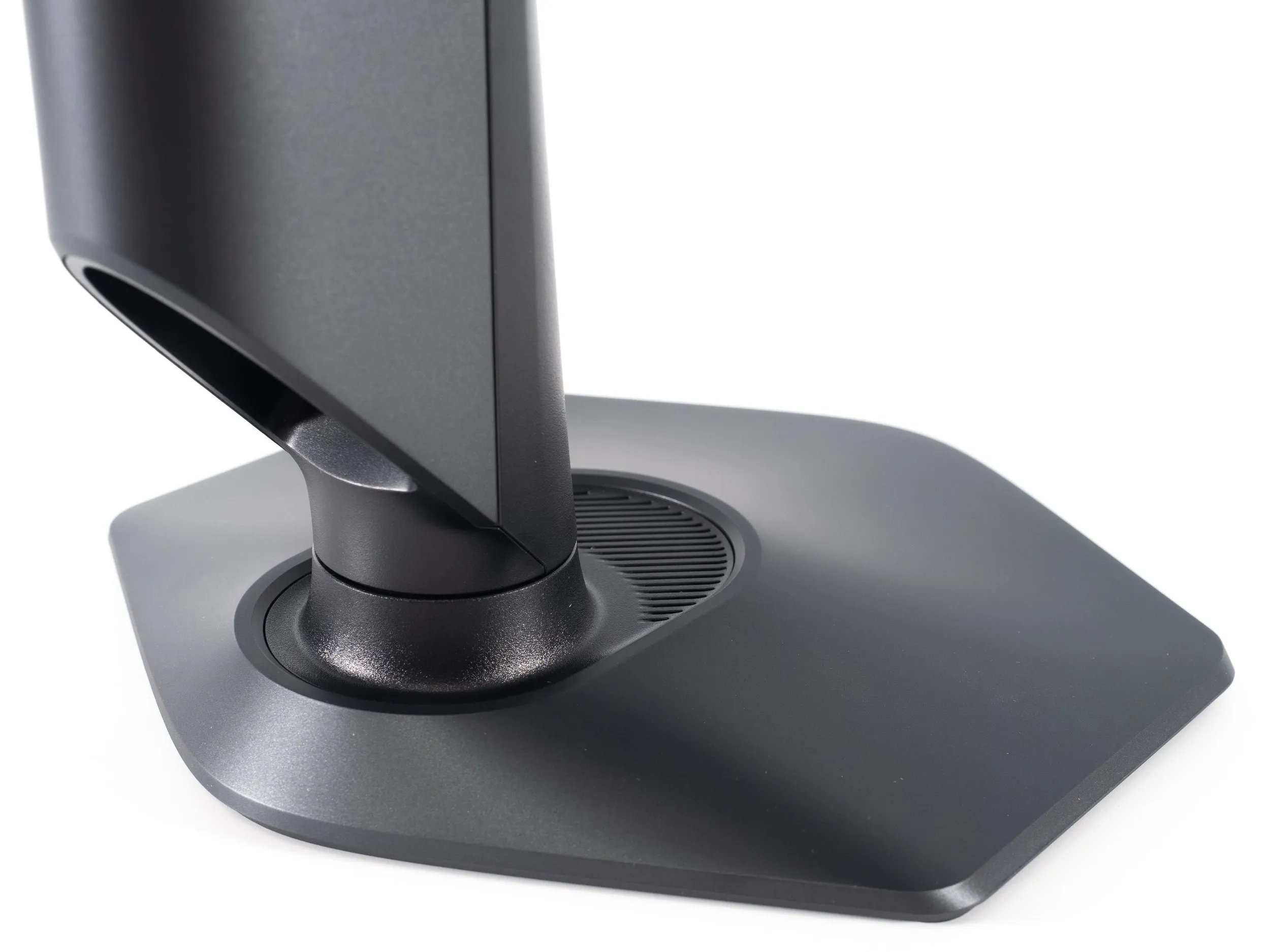 Все крепежные элементы, внутренности подставки и центральной колонны выполнены из металла. Для сцепления с рабочей поверхностью в подставке используется шесть резиновых ножек, которым прекрасно удаётся удерживать монитор в одном положении, в том числе благодаря весу всей конструкции в сборе.