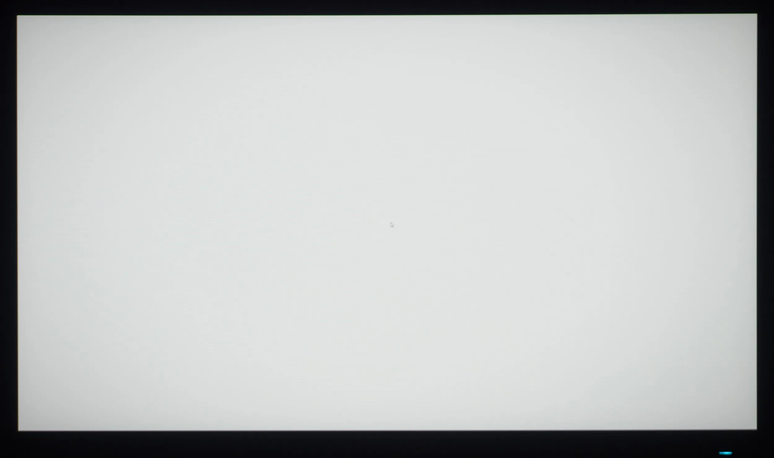 Фотография выше демонстрирует белое поле с минимальными коррекциями в графическом редакторе для более наглядного представления происходящего на экране с точки зрения равномерности светлого поля. Разница по яркости и цветовой температуре между центральной зоной, краями и углами панели, хорошо видна.