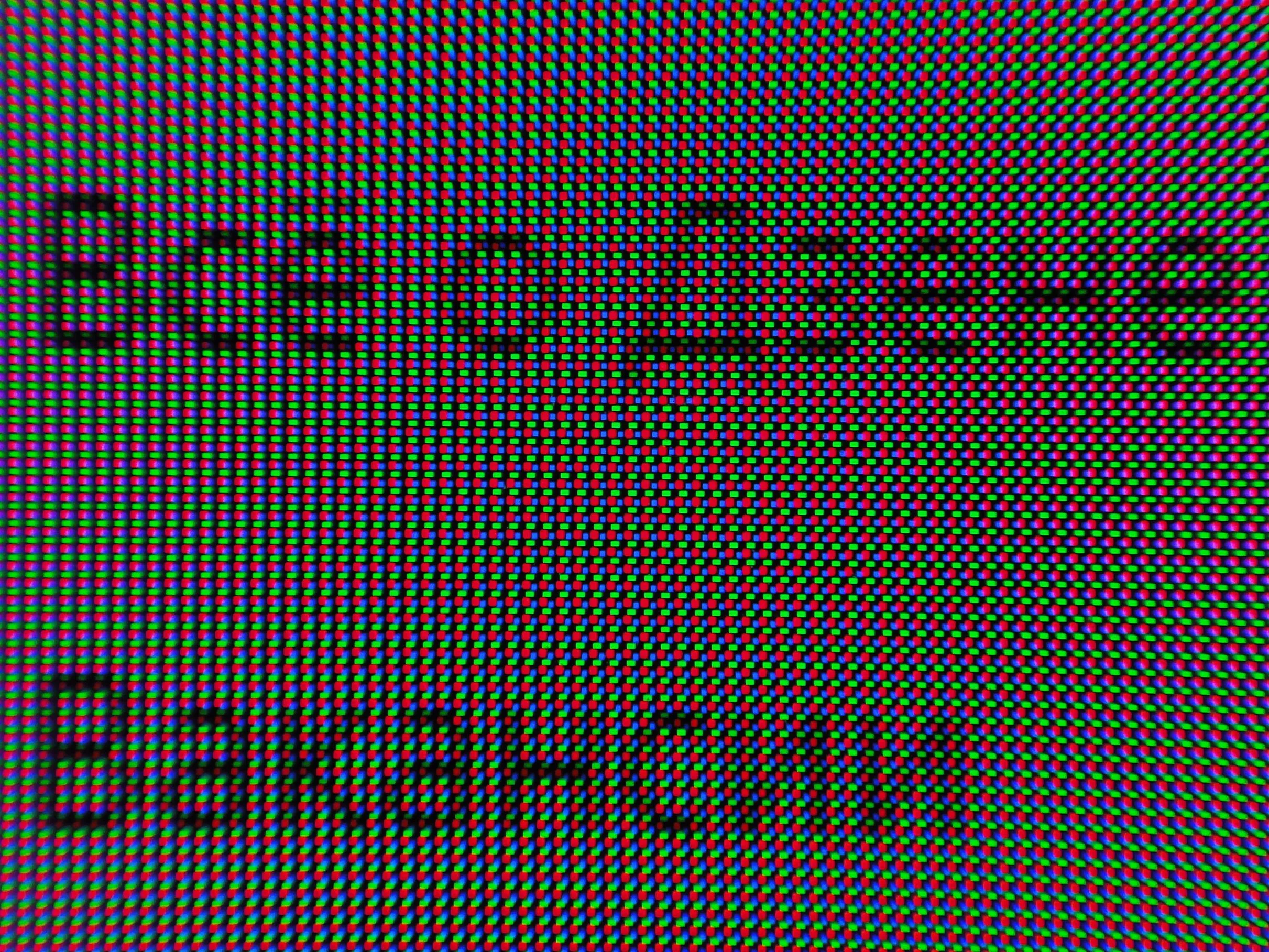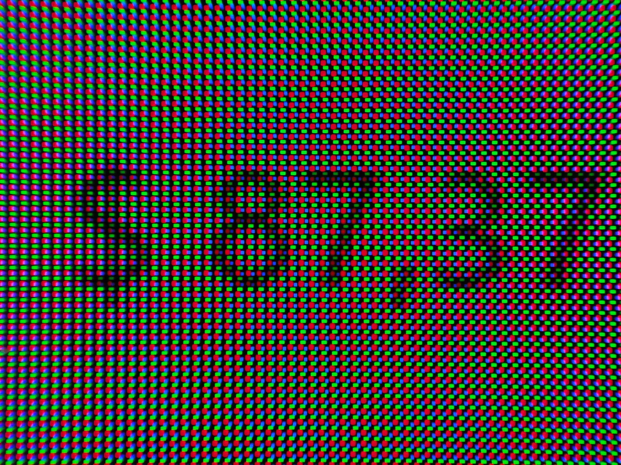 Как и у всех прямых конкурентов, в первую очередь видна новая структура пикселей: три субпикселя собраны в треугольник, но теперь (в отличие от QD-OLED первого поколения) они представлены в виде прямоугольников и квадратов и занимают большее пространство подложки матрицы.