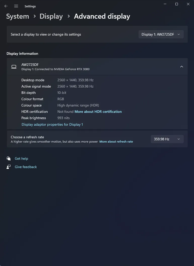 Уточним, что в 10-битном режиме, благодаря поддержки технологии сжатия данных DSC, дисплей способен работать даже на максимальной частоте 360 Гц в полноцветном режиме RGB, как в SDR, так при включении HDR.