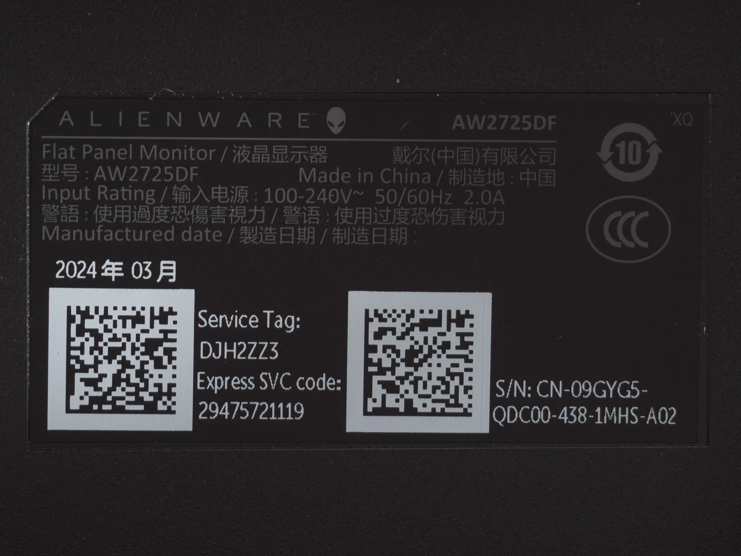 В задней части монитора находится наклейка с информацией, которая повторяет таковую с упаковки монитора. Есть немного вводных данных и рядом с областью крепления центральной стойки. Но и тут ничего нового мы не узнали. Основным же подрядчиком (реальным изготовителем монитора) является компания Qisda (Suzhou) – один из основных партнёров для американской Dell в производстве мониторов.