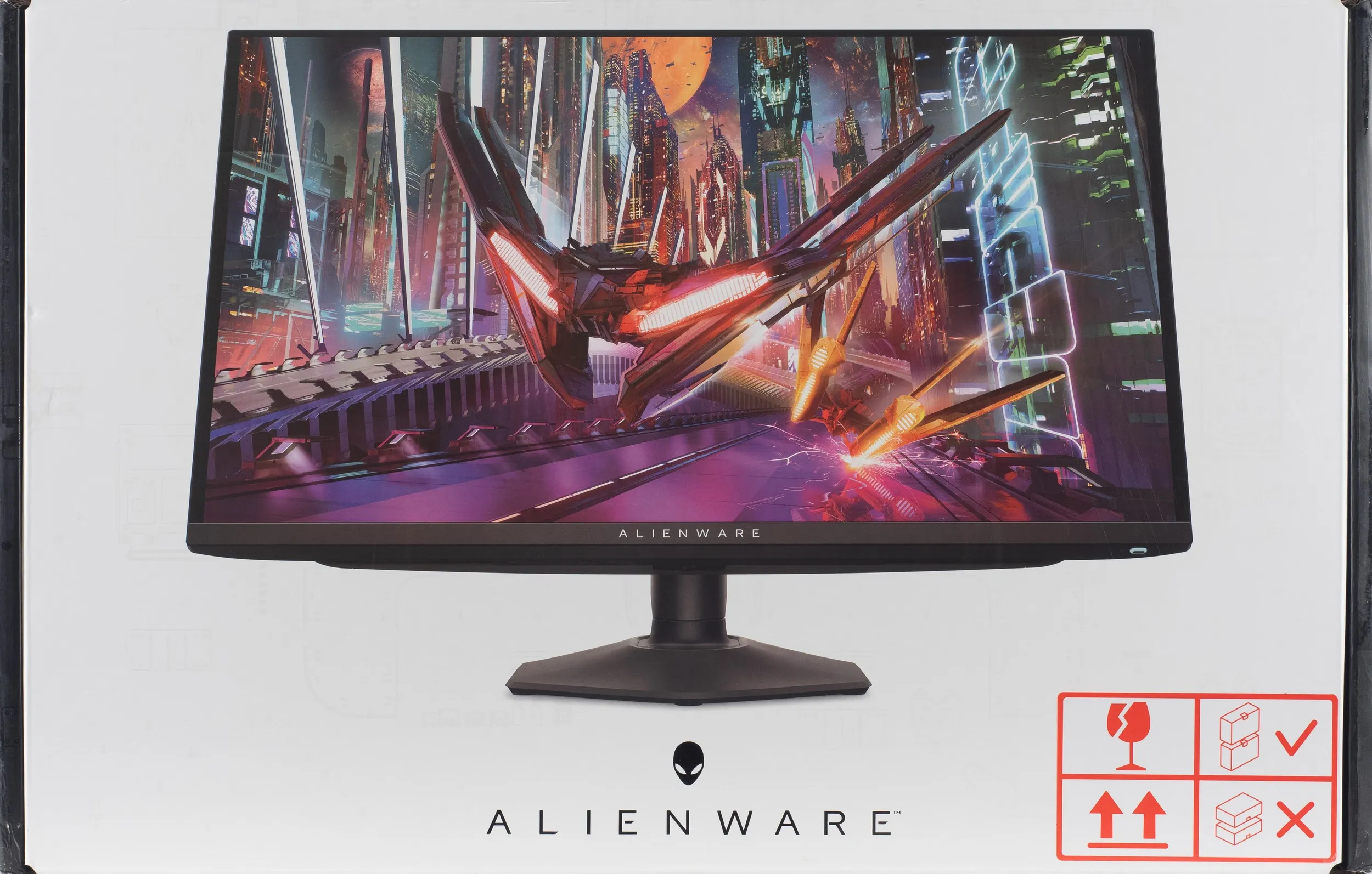 Монитор Alienware AW2725DF упакован в достаточно большую коробку (для его габаритов так уж точно), с качественной полиграфией, несколькими фотографиями дисплея с основных ракурсов и упоминанием самых важных отличительных черт.
