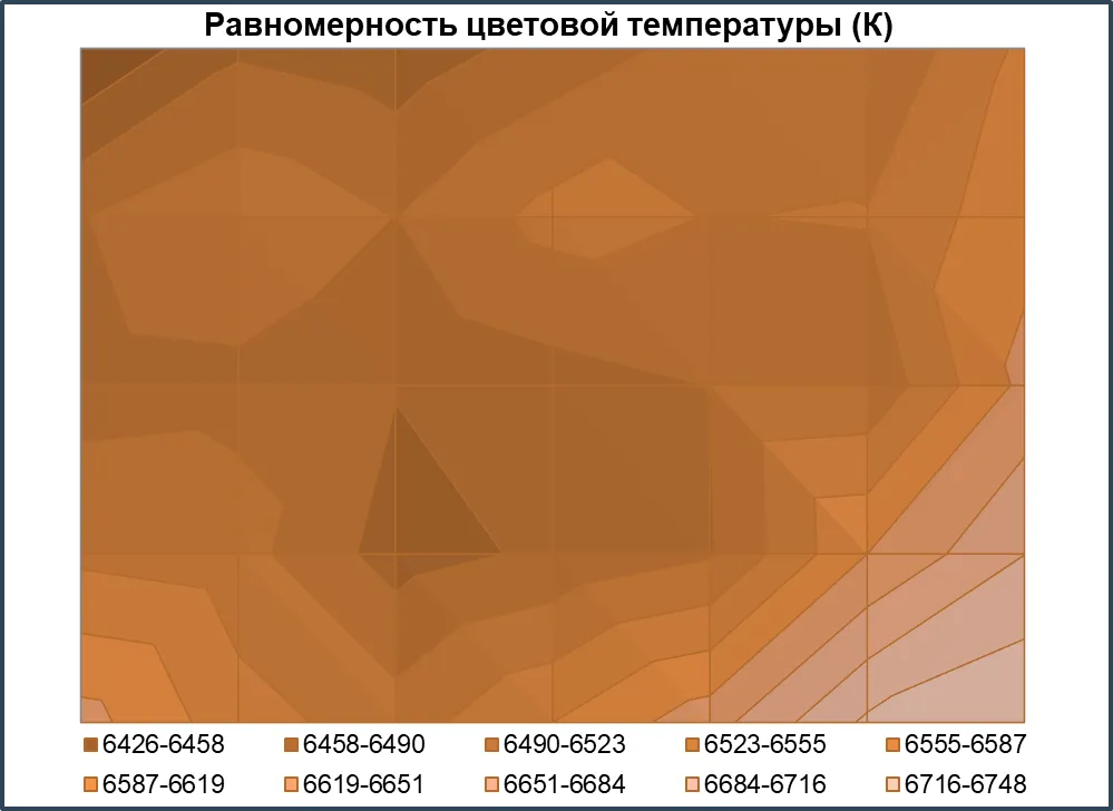 Теперь перейдём к рассмотрению равномерности цветовой температуры на всей площади экрана.