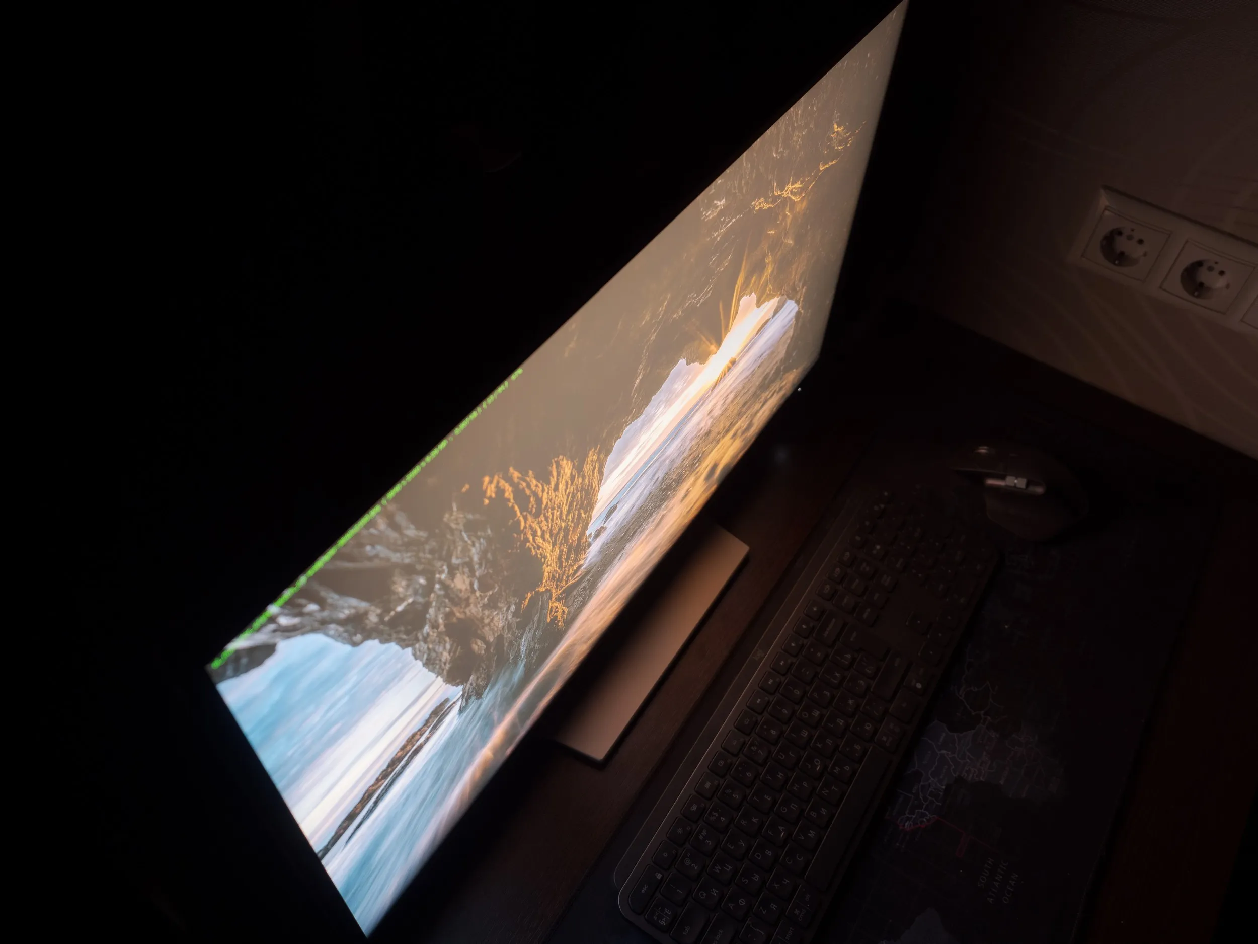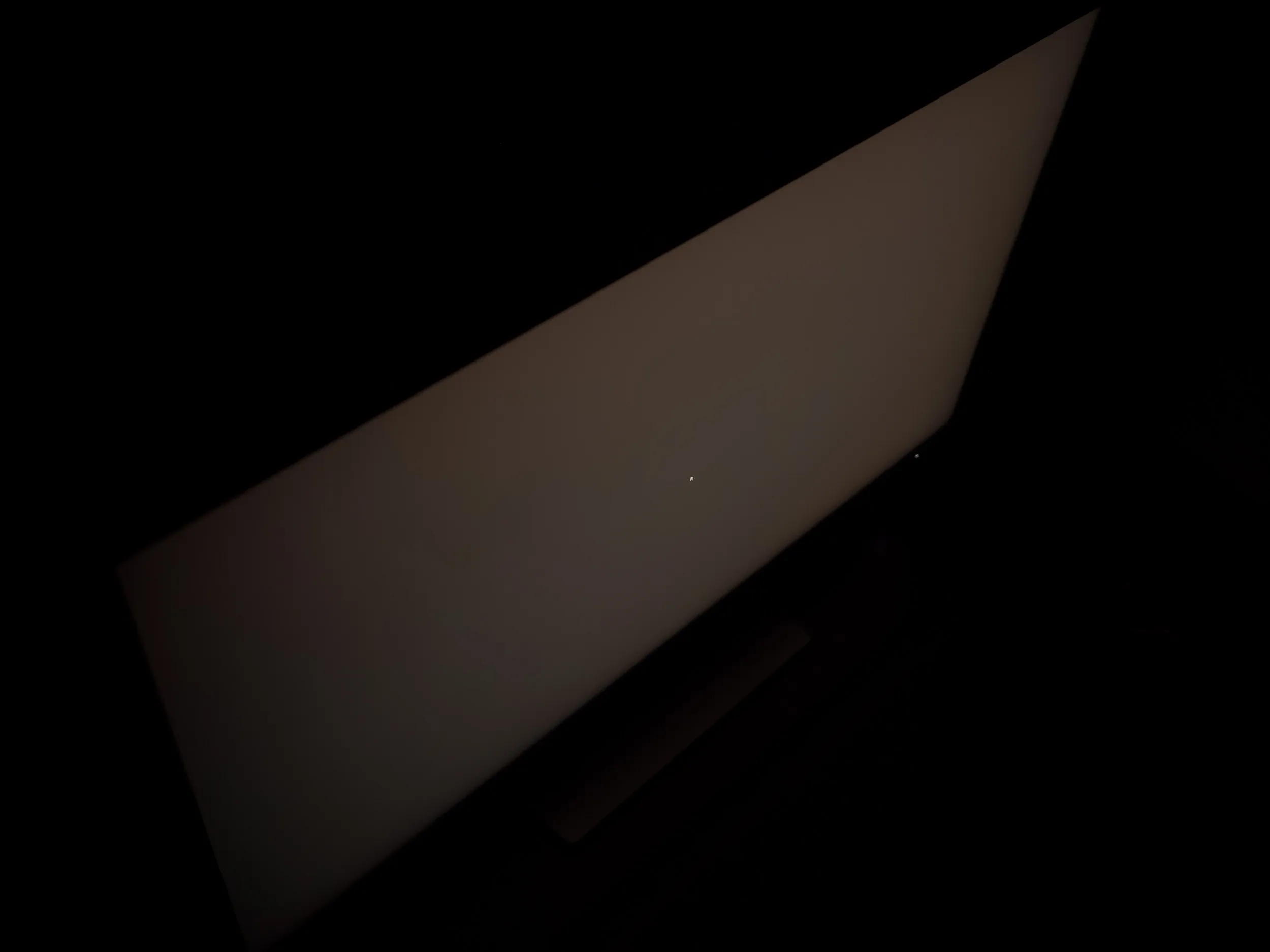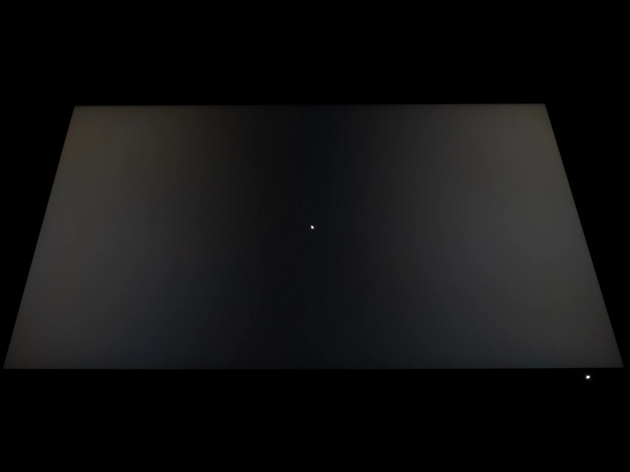 Теперь рассмотрим черный фон, оценив его «равномерность» по двум фотографиям, сделанным на разном отдалении от экрана (~70 см и 150 см), чтобы вы могли наглядно оценить влияние уже всем надоевшего Glow-эффекта и узнать реальную равномерность подсветки без его учёта.