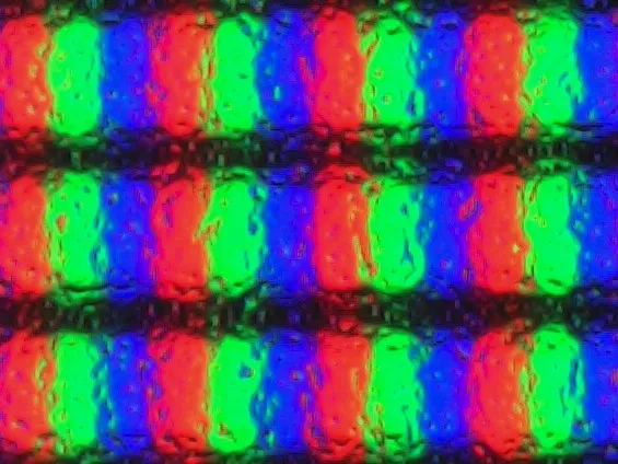Мы видим структуру пикселей свойственную современным IPS-панелям, больше похожую на классические AH-IPS/Nano IPS от LG. Используемая поверхность не столь грубая, как у настоящих матовых вариантов, но явно грубее, чем у более популярных в современной реальности полуматовых образцов.