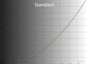 При стандартных настройках измеренные гамма-кривые проходят несколько выше референса, что приводит к снижению контрастности изображения на экране. Также отмечен некоторый дисбаланс RGB, что вероятно и приводит к ухудшению результатов стабильности ЦТ оттенков серого.