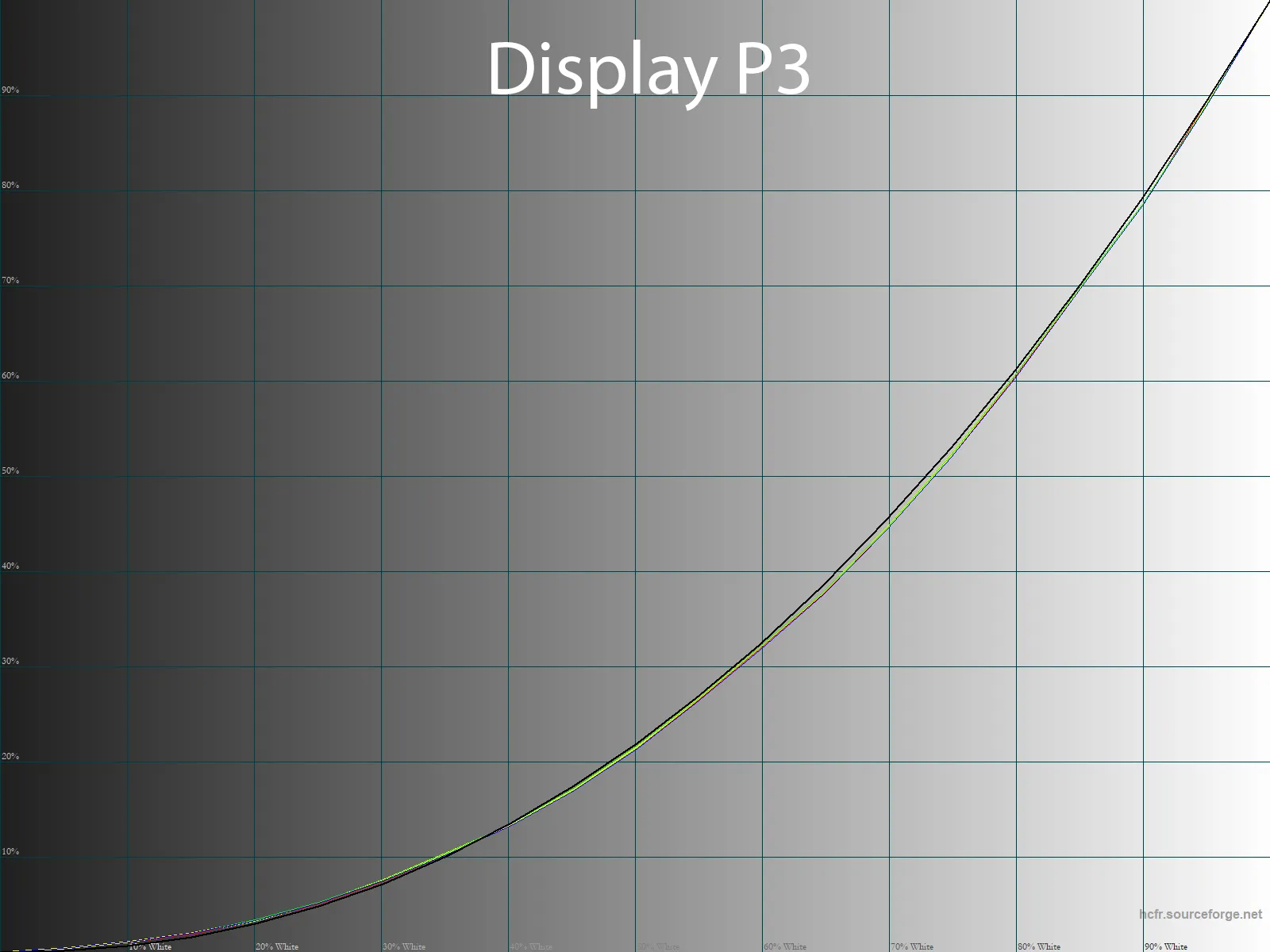 Точка белого у новинки установлена на среднем уровне точности, но в режиме Display P3 ситуация, очевидно, лучше – отклонение от референса 6500К всего 1,7 DeltaE.
