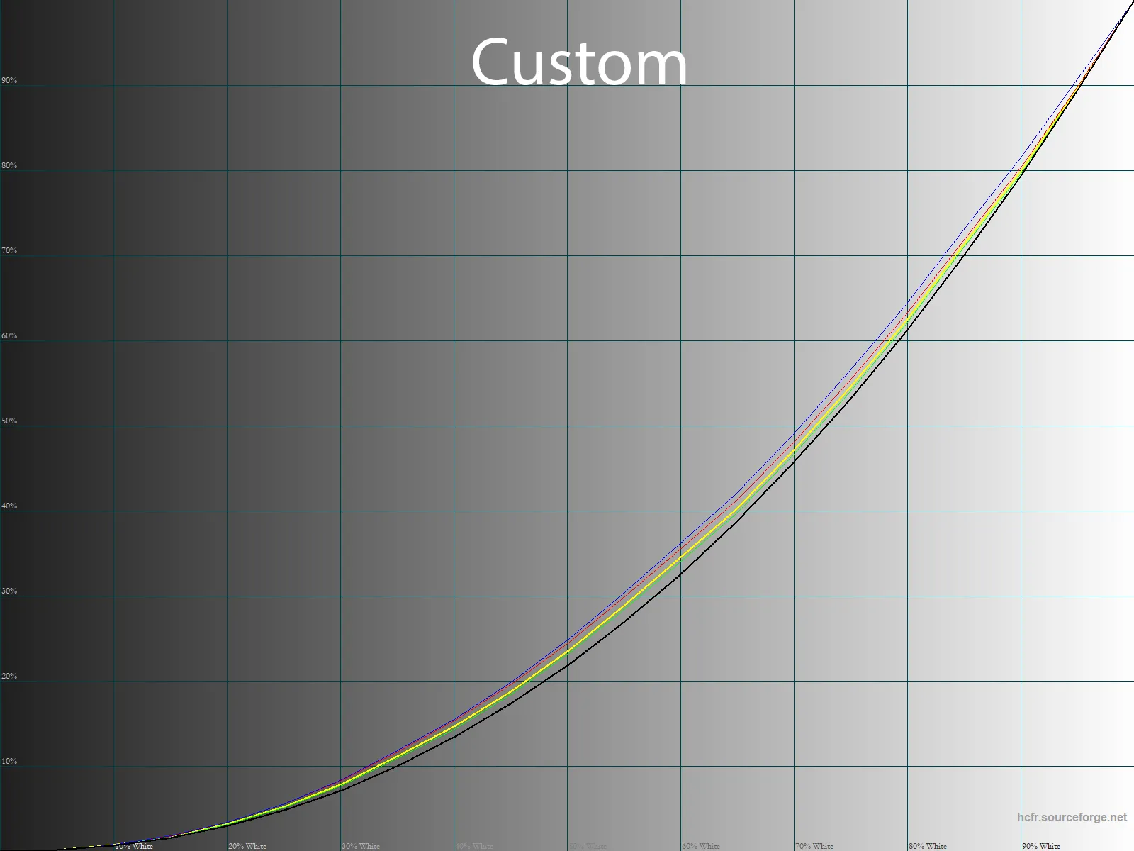 С помощью программы HCFR Colormeter и “откалиброванного” колориметра X-Rite Display Pro нами были изучены гамма-кривые во всех рассмотренных выше “режимах”, как изначально предустановленных, так и специально “разработанных”. Кроме того, по произведённым измерениям можно оценить расхождение серого клина (точек чёрно-белого градиента) на CIE диаграмме и сделать выводы о преобладании того или иного паразитного оттенка, либо его таковом отсутствии.