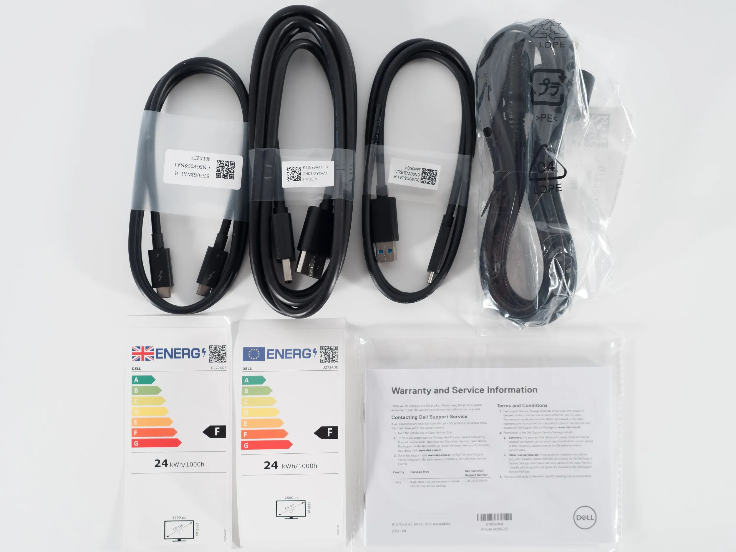 Комплект поставки Dell U2724DE включает в себя следующее: