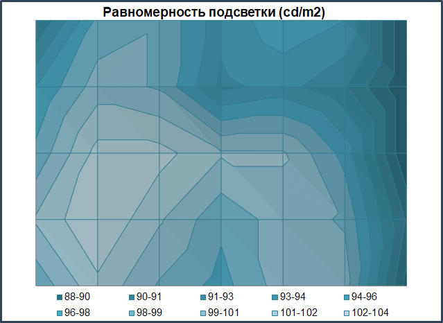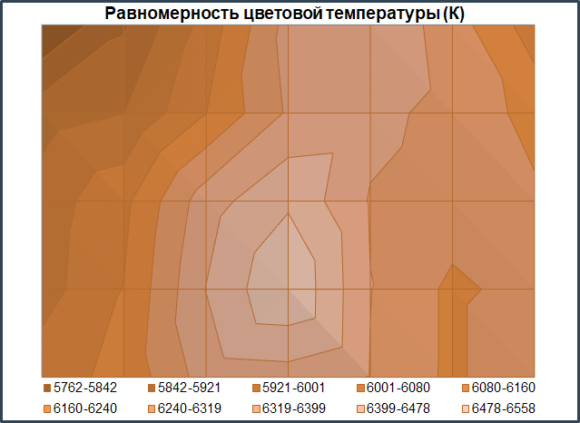 Теперь перейдём к рассмотрению равномерности цветовой температуры на всей площади экрана.