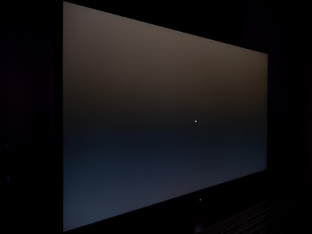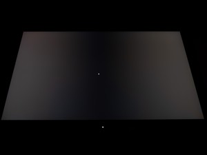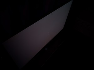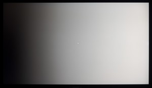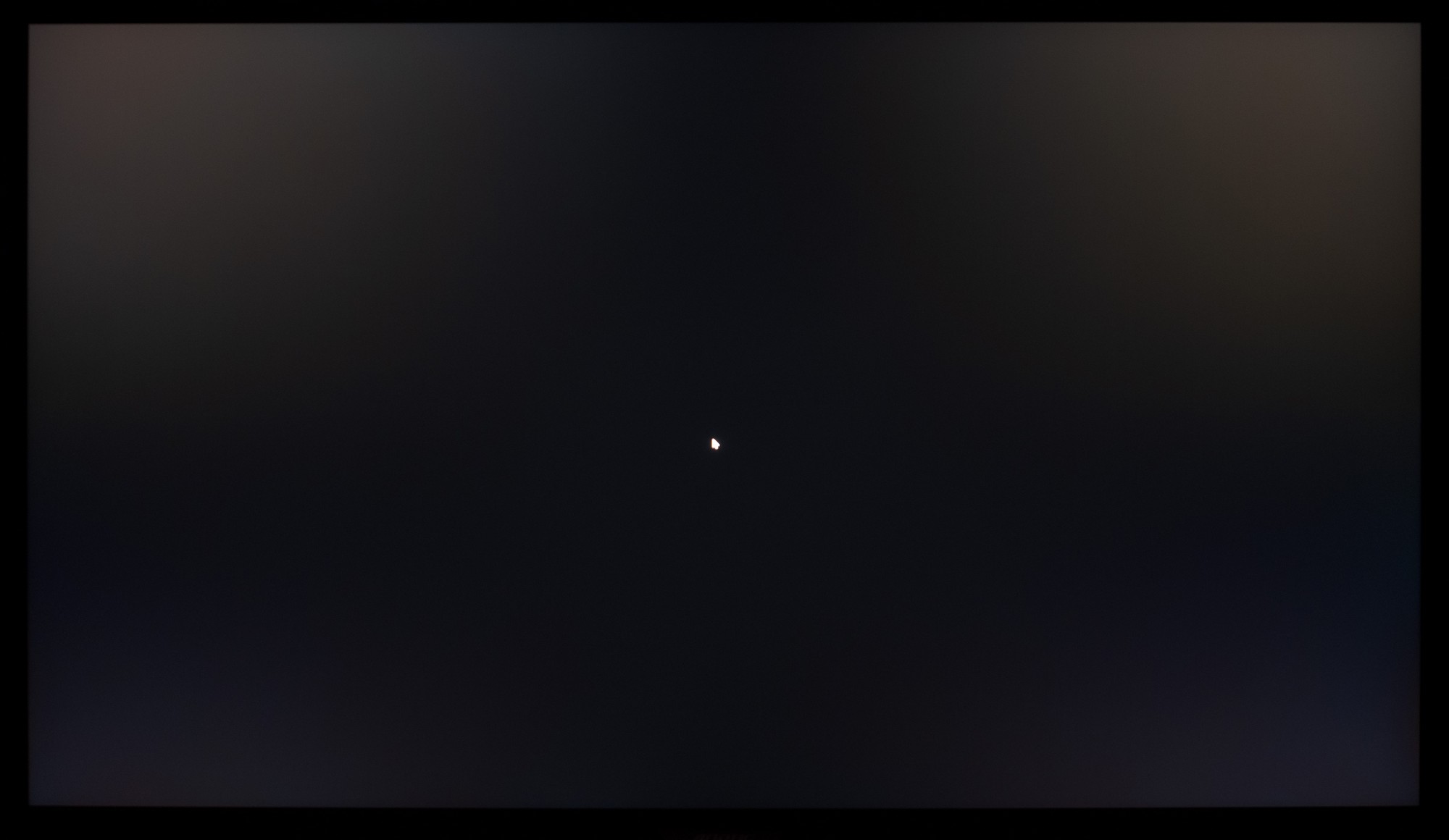 Теперь рассмотрим черный фон, оценив его «равномерность» по двум фотографиям, сделанным на разном отдалении от экрана (~70 см и 150 см), чтобы вы могли наглядно оценить влияние уже всем поднадоевшего Glow-эффекта и узнать реальную равномерность подсветки без его учёта.