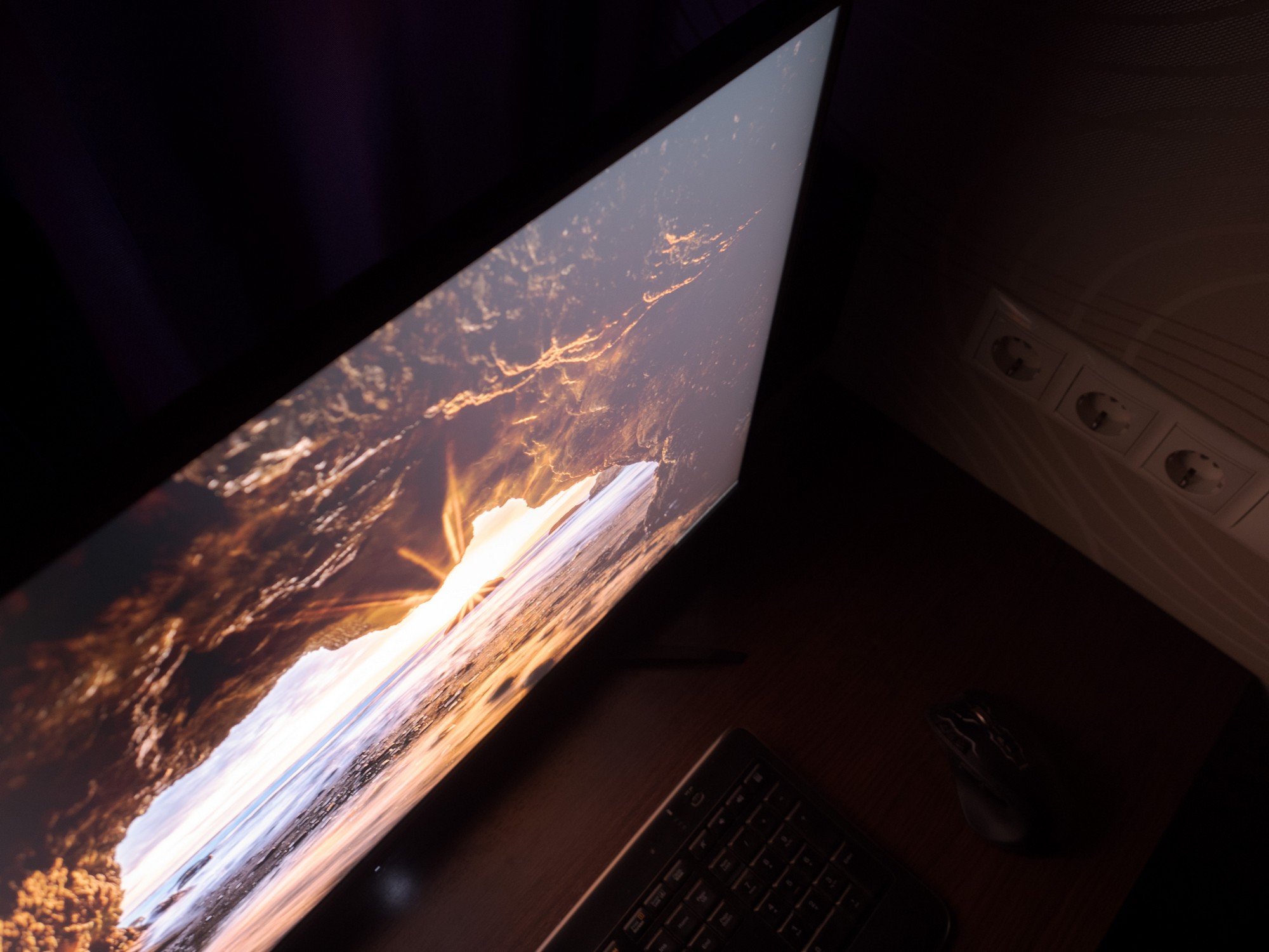 При отдалении же от экрана Glow полностью исчезает и чёрный фон начинает демонстрировать реальную равномерность подсветки. Её результат оказался не самым высоким: у нашего экземпляра оказалось порядка 4-5 зон разной величины с желтоватым паразитным оттенком. Особых проблем во время работы это не доставляет, но точно усиливает видимость углового Glow-эффекта на тёмных изображениях.