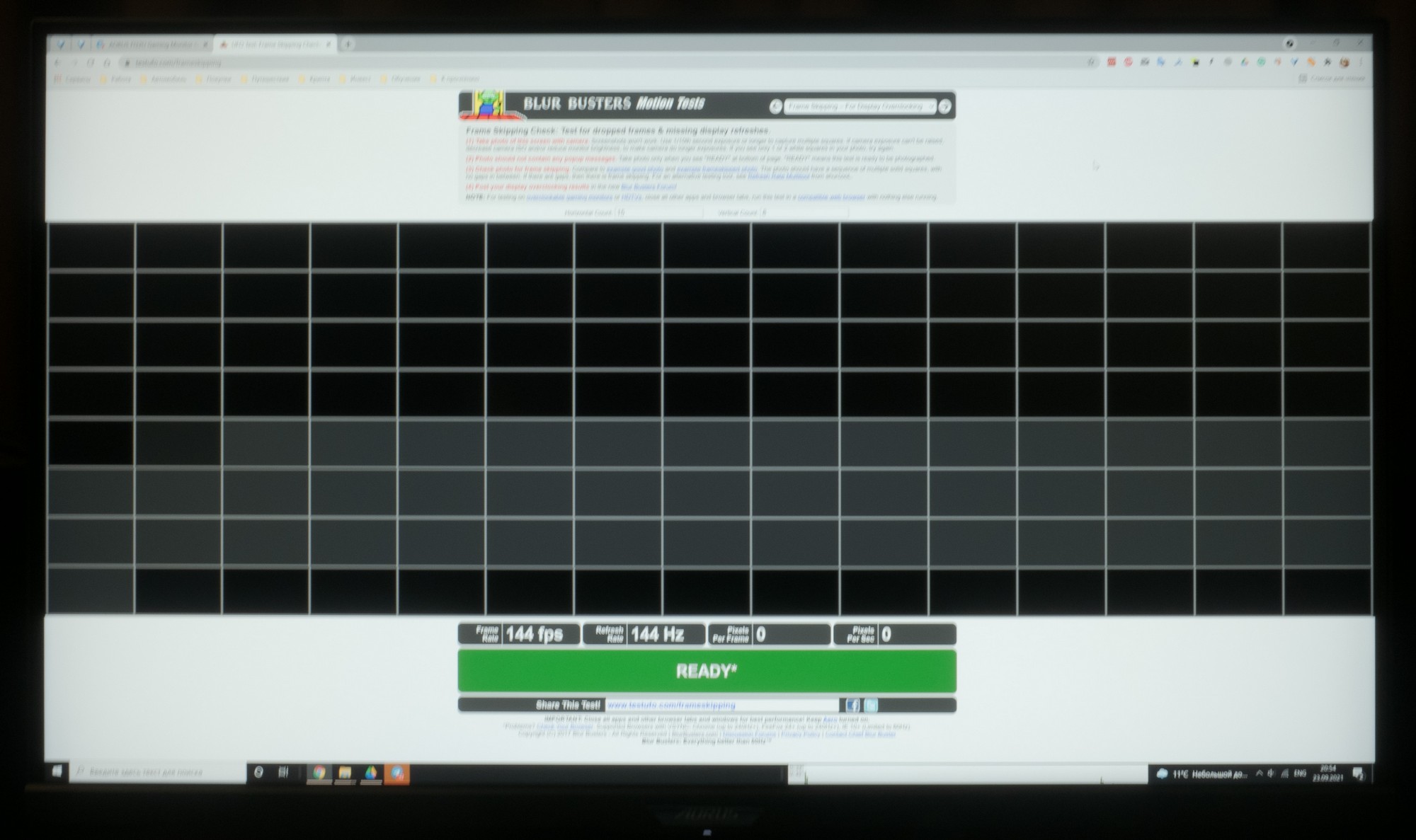 Отсутствие пропуска кадров при максимальной заявленной частоте вертикальной развёртки было подтверждено с помощью специального теста из пакета TestUFO. Проблем у Gigabyte AORUS FI32U c этим нет.