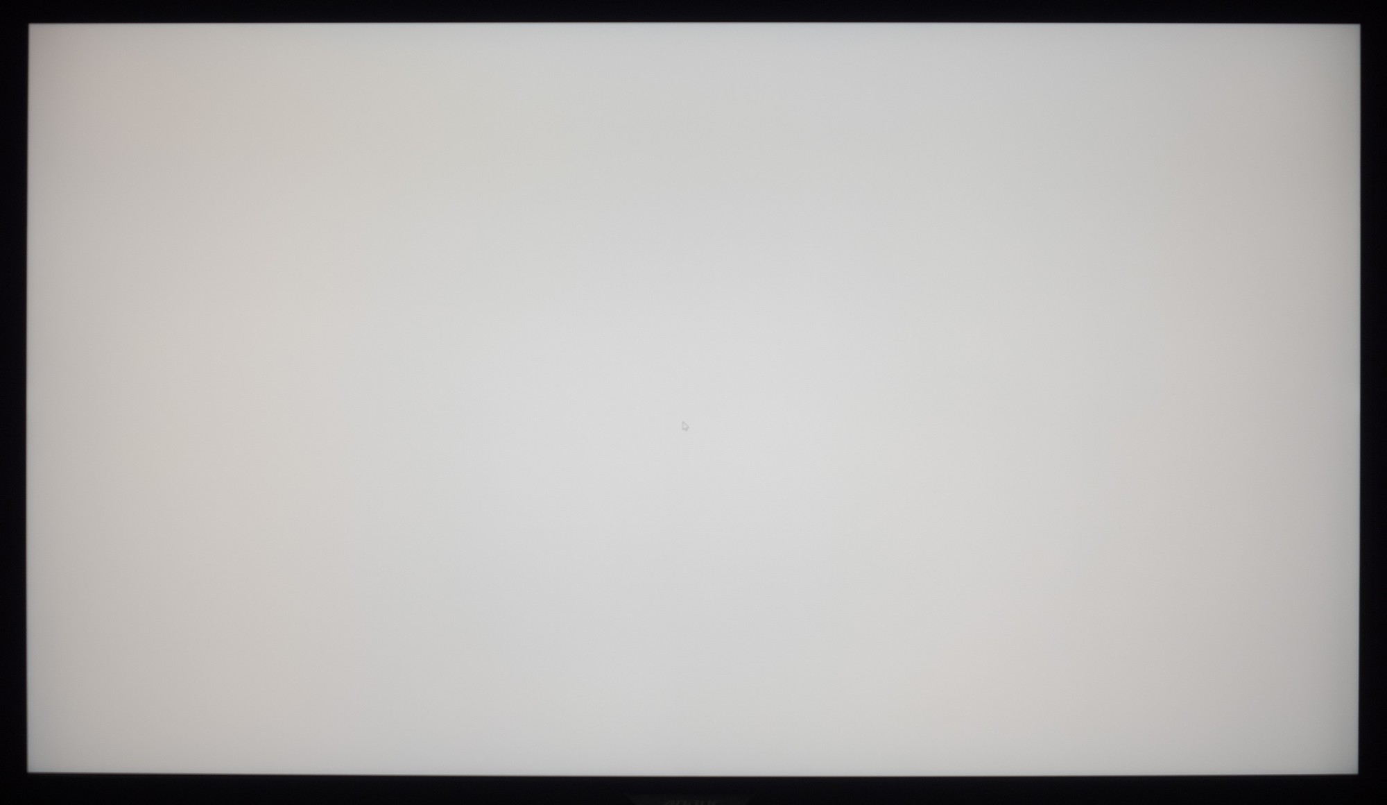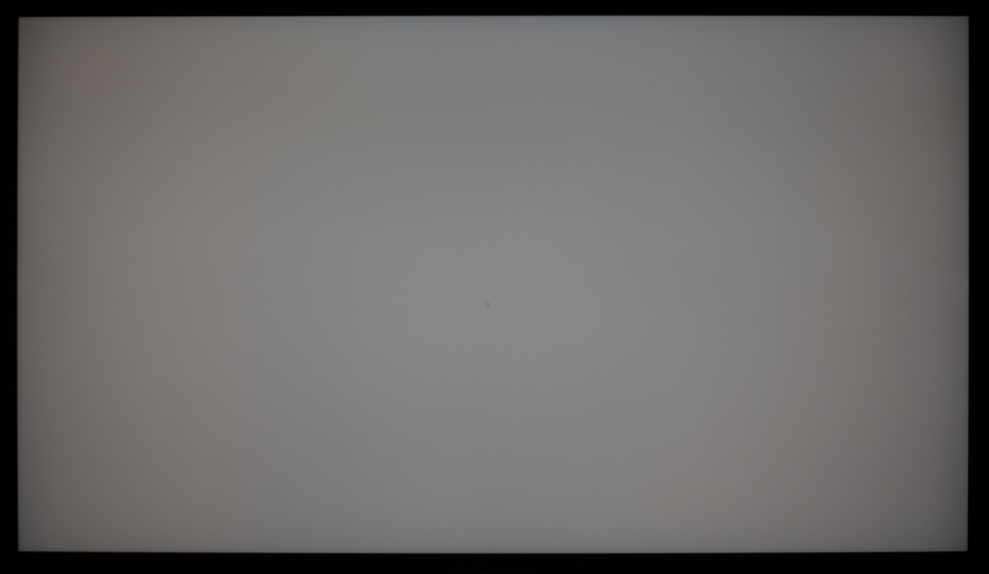 Фотография выше демонстрирует белое поле с минимальными коррекциями в графическом редакторе для более наглядного представления происходящего на экране с точки зрения равномерности светлого поля. Сразу видно, что проблем с равномерностью яркости у монитора нет, а вот различия по цветовой температуре заметны значительно лучше.