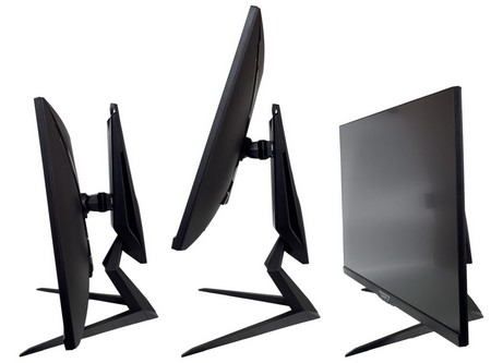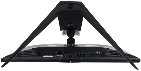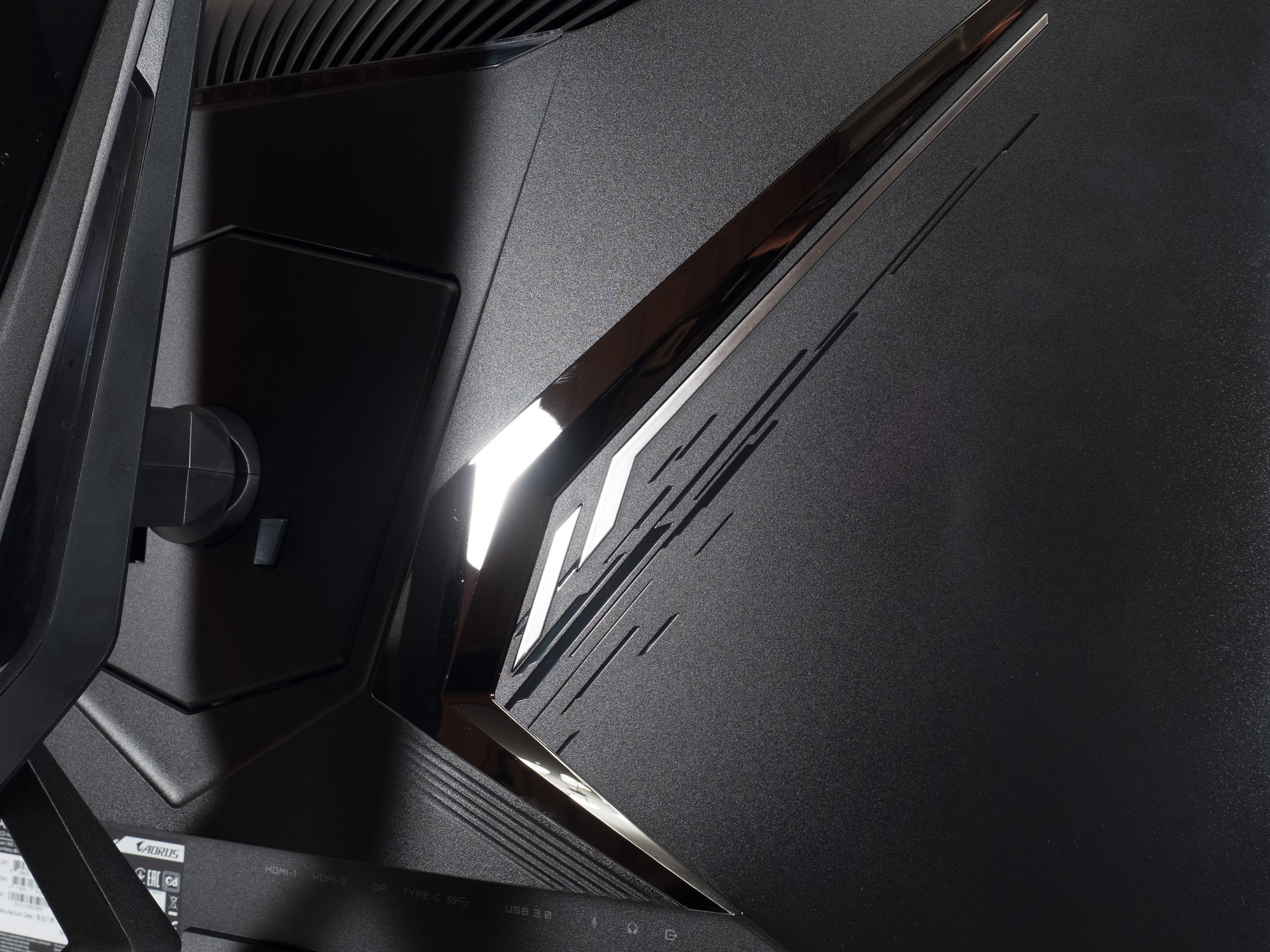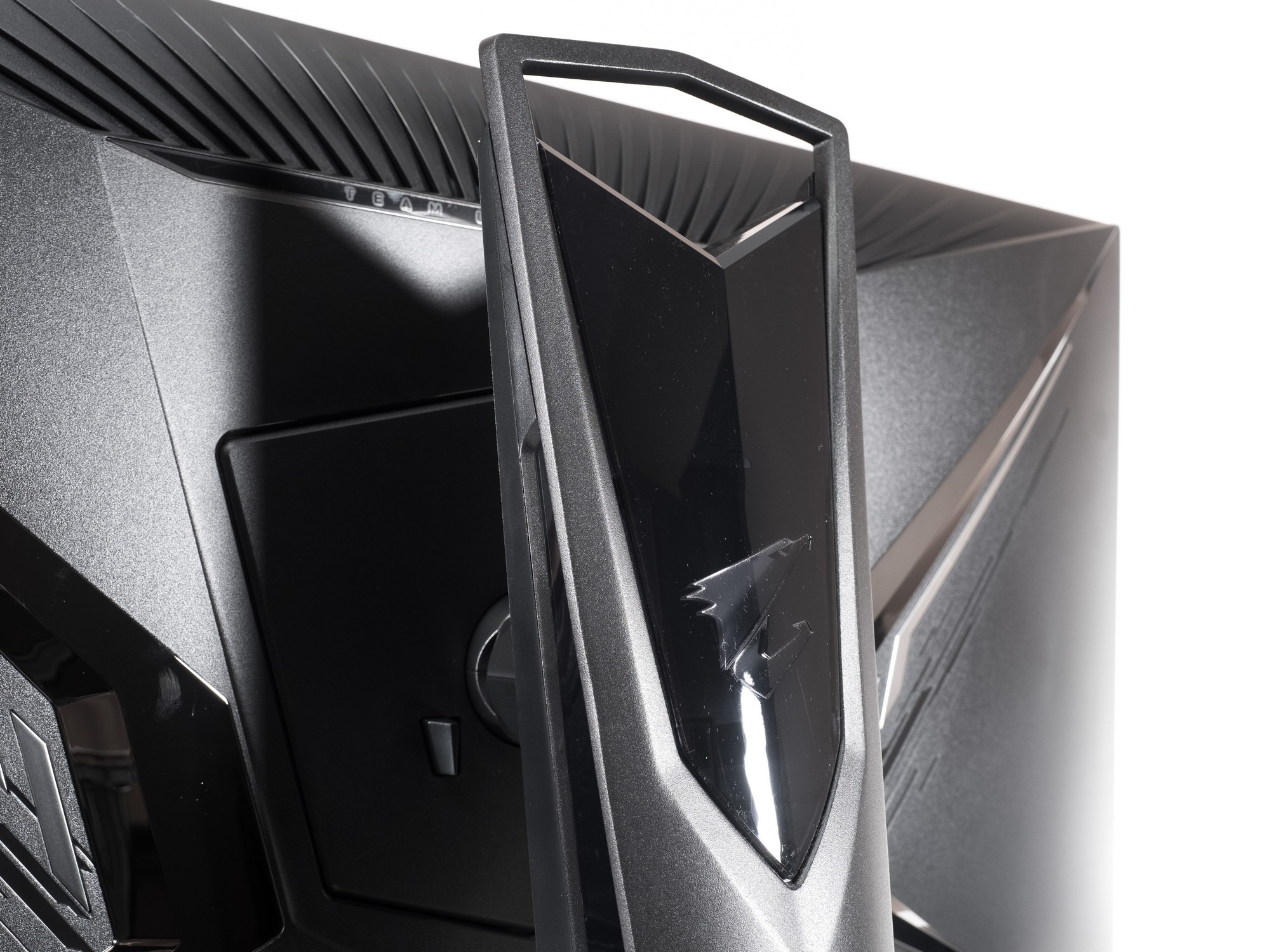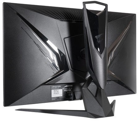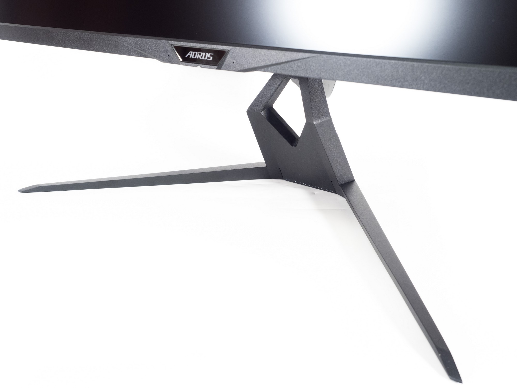 Спереди перед нами знакомый «безрамочный» корпус, который вкупе с применяемой нижней рамкой, формой элемента куда вписан логотип AORUS и ножками подставки формирует образ некоторых популярных решений от компании Acer из серии Predator.