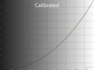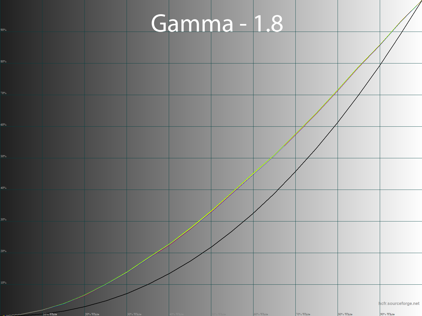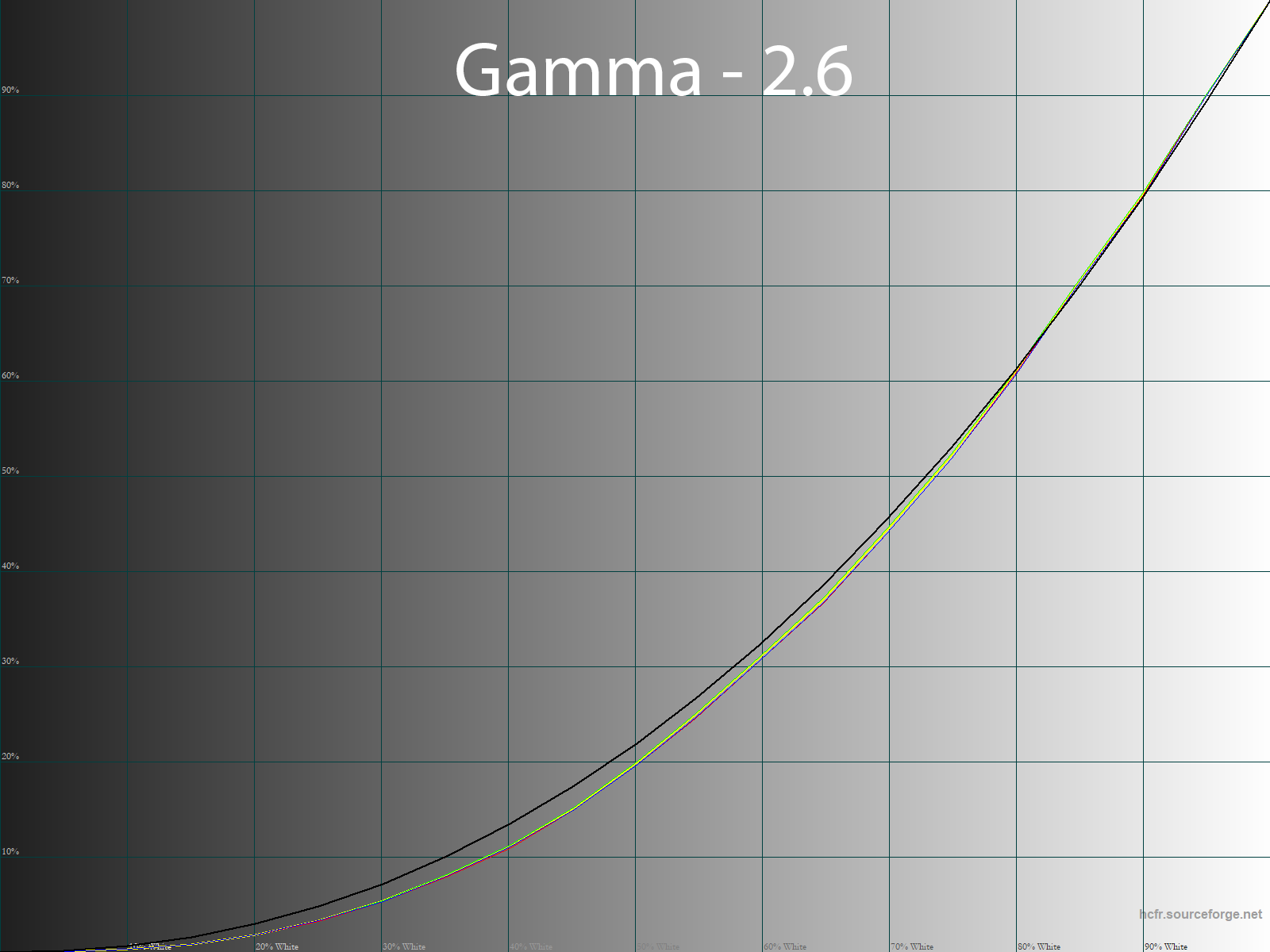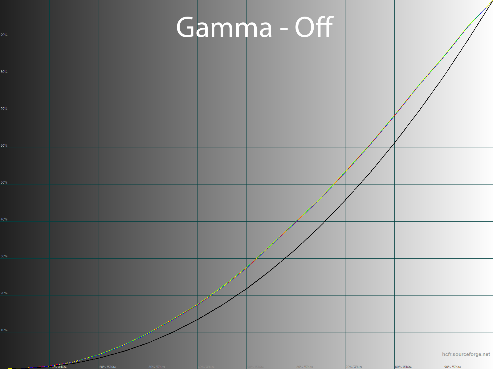 При настройках по умолчанию из-за адаптивной подсветки и автоматического изменения гаммы гамма-кривые оказались очень интересной формы. Глубокие тени убиты, просто тени хорошо различимы, а все средние оттенки затемнены. Баланс оттенков серого достаточно высокий, но не хватает точности установки вблизи 6500К.
