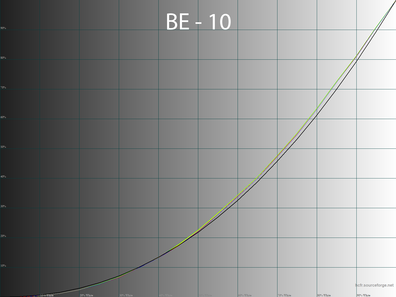 Параметр Black Equalizer, как понятно из его названия, регулирует различимость теней, однако, плавности ему не хватает, а рабочий диапазон, как оказалось, излишне широк. При настройках по умолчанию (BE – 10) и выставленной Gamma 2.4 на графике всё хорошо.