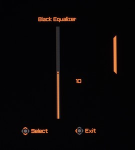 Но при повышении до 12 единиц все тени становятся блеклыми, различимость крайних светлых оттенков пропадает – они сливаются воедино. Никакого смысла крутить выше 11-12 (максимумом же выступает значение в 20 единиц) нет. Как и нет ни одной объективной причины снижать изначально выставленное значение, поскольку происходит обратный эффект – все тени пропадают (уже на уровне 9), и мы получаем большие чёрные пятна, а ведь с заводским значение (10) c тенями также есть ощутимые проблемы. Монитор повторяет поведение многих решений от Gigabyte и очень странно, что производитель, до сих пор, не устранил данные особенности работы эквалайзера.