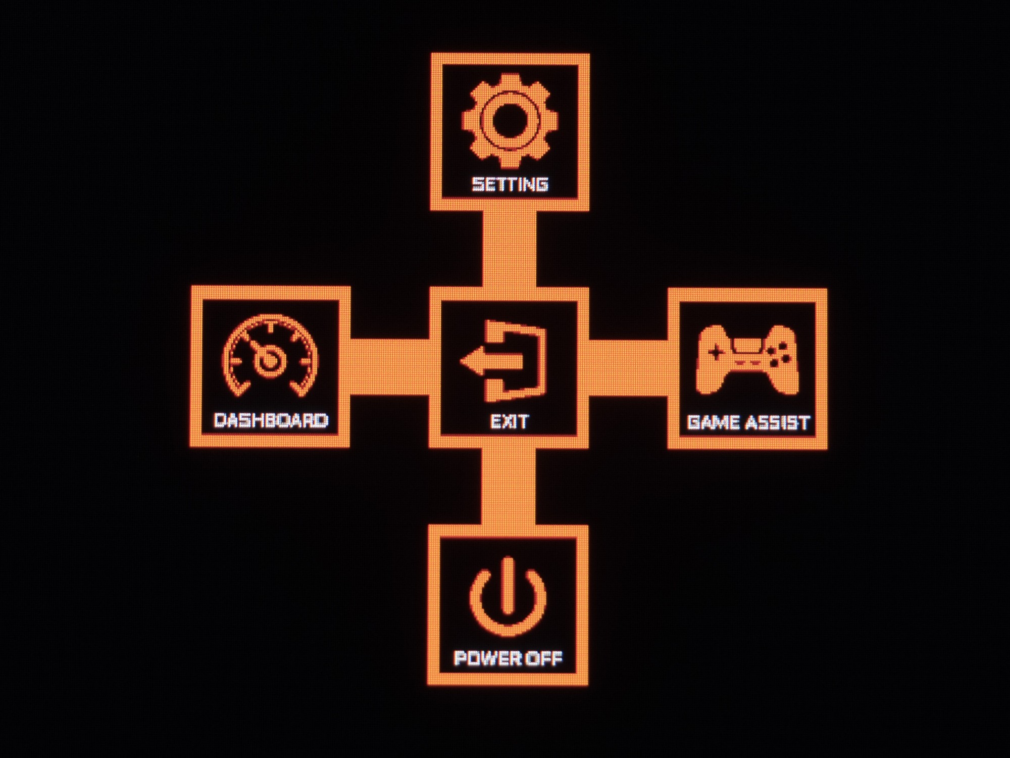 Среди опций с быстрым доступом у героя обзора по умолчанию установлены следующие: выбор источника сигнала и Picture Mode, эквалайзер чёрного, уровень громкости аудио, переход к настройкам GameAssist, Dashboard и KVM. По желанию функции всех четырёх положений джойстика могут быть изменены – выбор доступных опций достаточно широк.