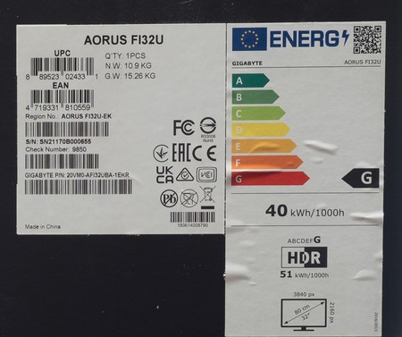 Общий список особенностей модели насчитывает более двадцати пунктов, а по одной из информационных наклеек можно узнать номер партии, серийный номер и полное название монитора, его массу и страну производства (Китай). Другой полезной информации мы не обнаружили.