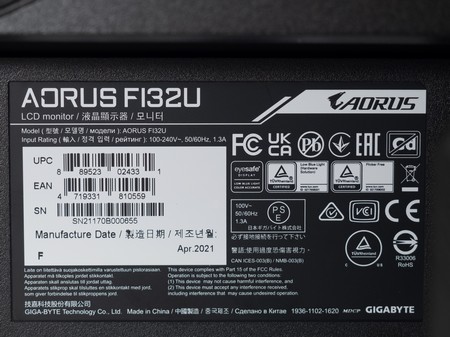 Сзади корпуса покупатель обнаружит одну наклейку. Благодаря ей мы смогли узнать примерную дату изготовления нашего экземпляра – апрель 2021 года. Кроме того, как и обычно, присутствует информация по серийному номеру, номер партии, энергопотребление, а также данные по соответствию экологическим и стандартам безопасности.
