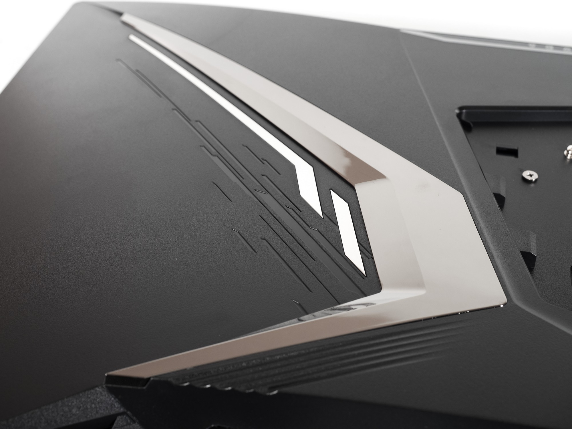 Сложносочинённая задняя крышка с полупрозрачными вставками, через которые пробивается настраиваемая RGB-подсветка вместе с не менее футуристическими формами центральной колонны напоминают решения от ASUS и последние новинки от MSI. Форма получаемого рисунка с подсветкой здесь, безусловно, иная, но большого акцента на этом делать не стоит – в большинстве случаев смотреть на работу RGB Fusion 2.0 будет стена вашего рабочего помещения, а не вы.
