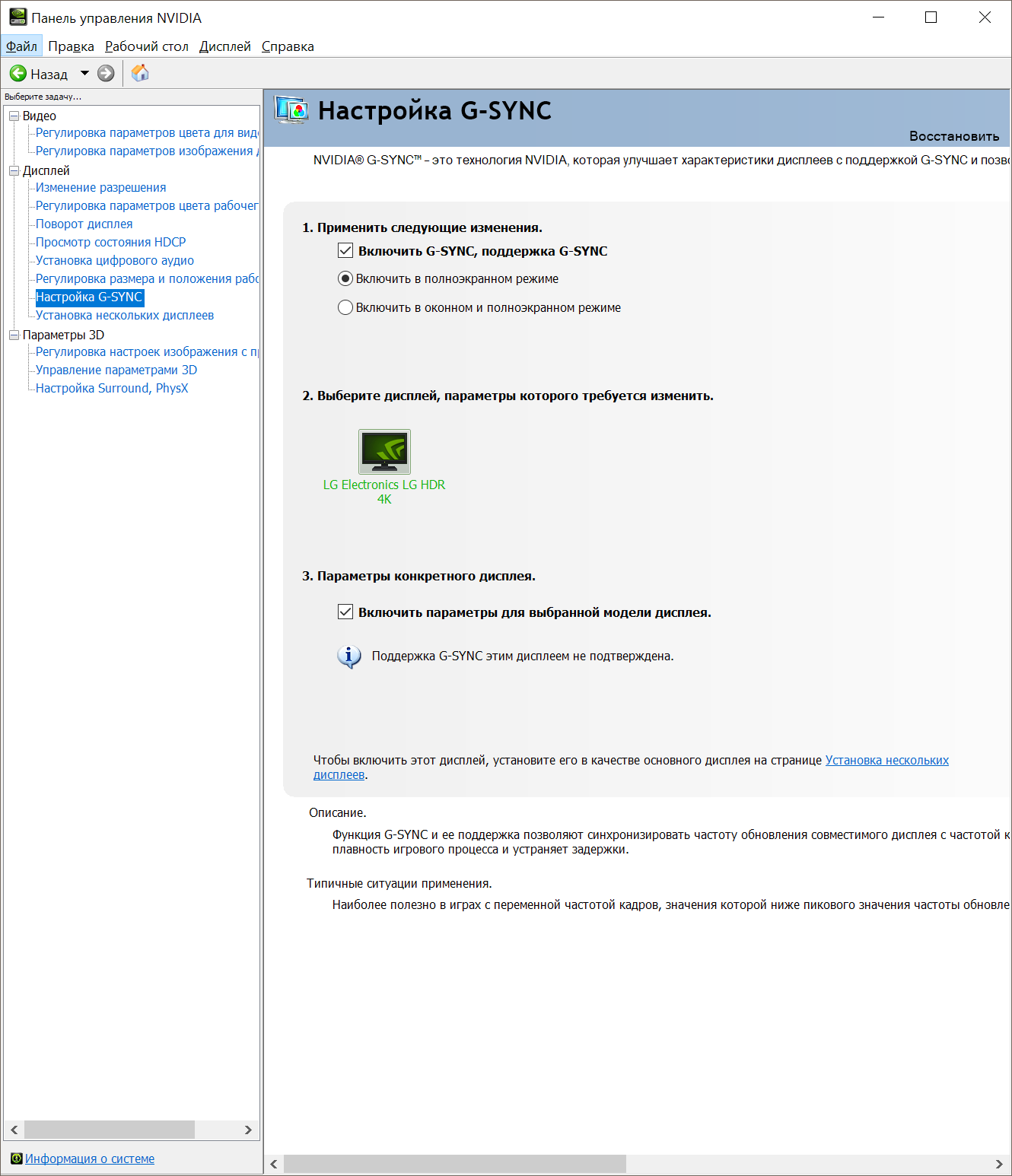 После активации FreeSync в настройках дисплея (по умолчанию он выключен) появляется возможность активации G-Sync Compatible в настройках драйвера NVIDIA. Подобный режим, конечно, не подтверждён обоими компаниями, но в ходе тестирования оказался вполне себе работоспособным.