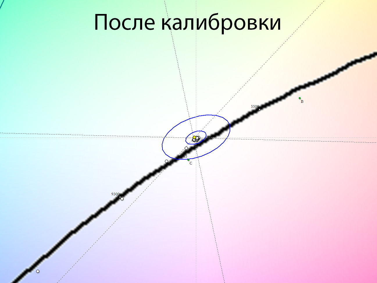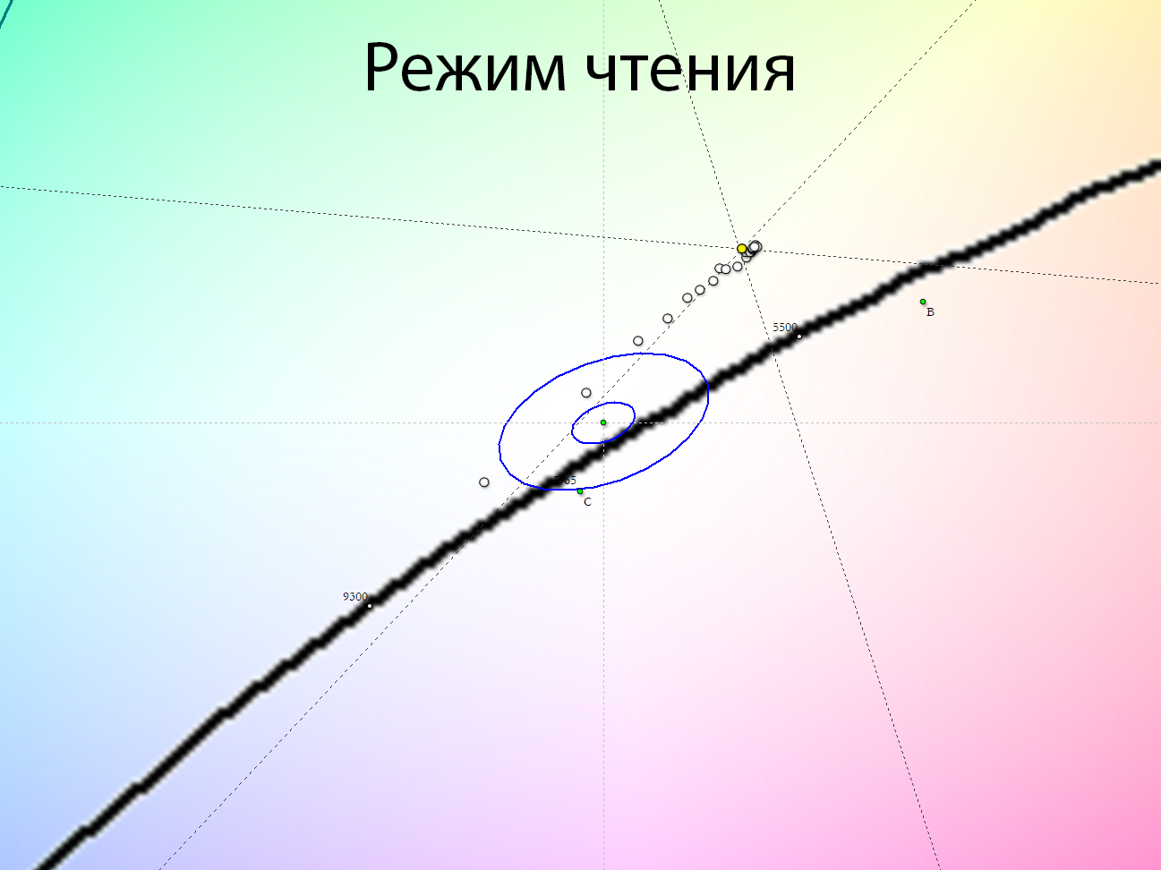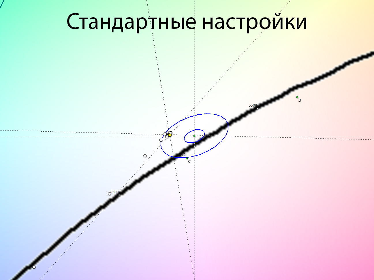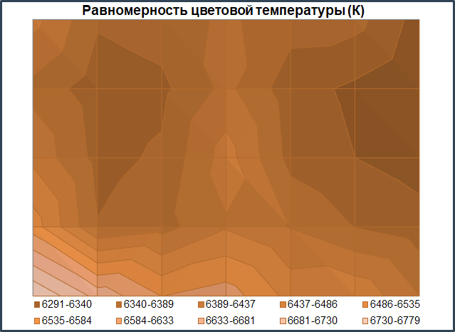 Теперь перейдём к рассмотрению равномерности цветовой температуры на всей площади экрана.