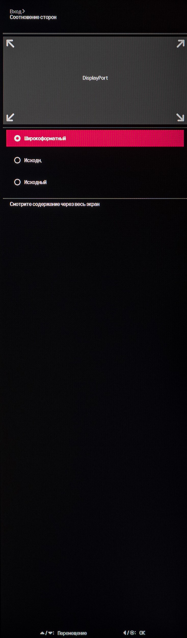 Второй отдан под выбор источника сигнала и изменение режима работы встроенного скалера изображения. Функции PiP и PbP, как уже говорилось ранее, отсутствуют.