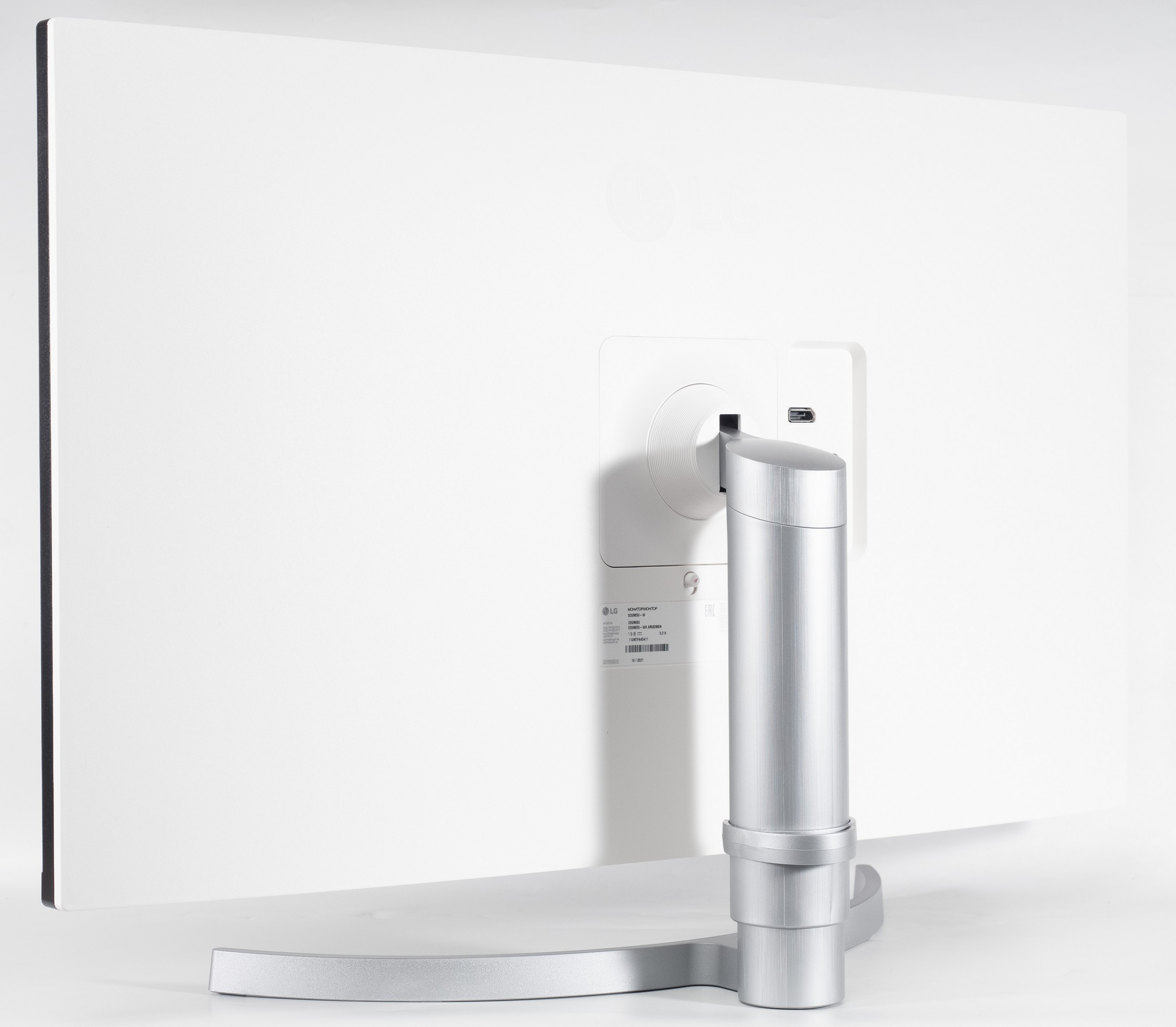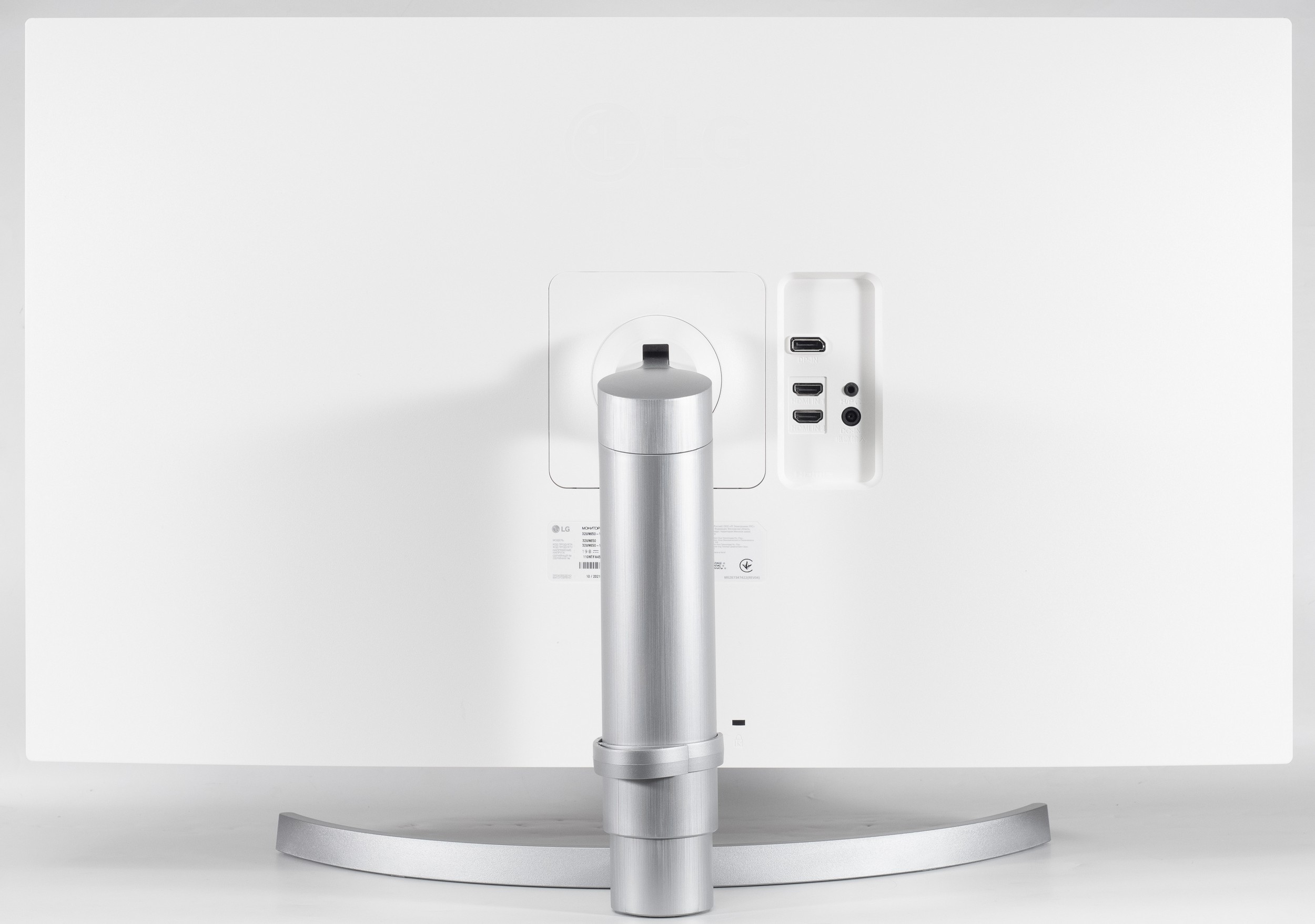 В отсутствии модного USB Type-С и простых USB Type-A для подключения периферии монитор оснащён хорошо знакомыми DP 1.4 и двумя HDMI 2.0, но без поддержки функций PiP и PbP. Зато 32UN650-W оснащён достаточно мощной акустической системой класса 2.0 с двумя динамиками по 5 Вт каждый. Система управления дисплеем сохранилась за привычным 5-позиционным джойстиком. Никаких систем подсветки внешнего пространства в модели не предусмотрено.