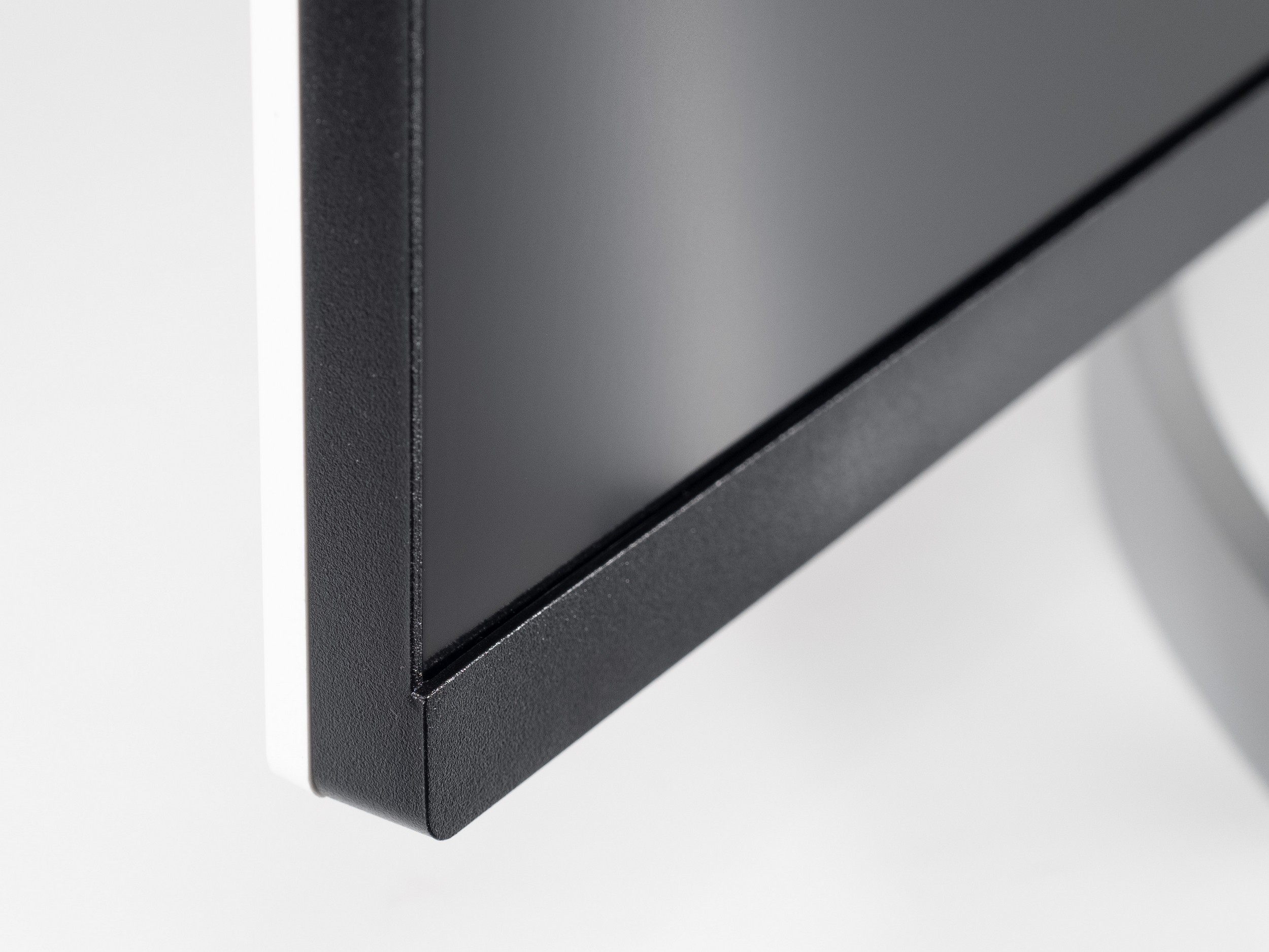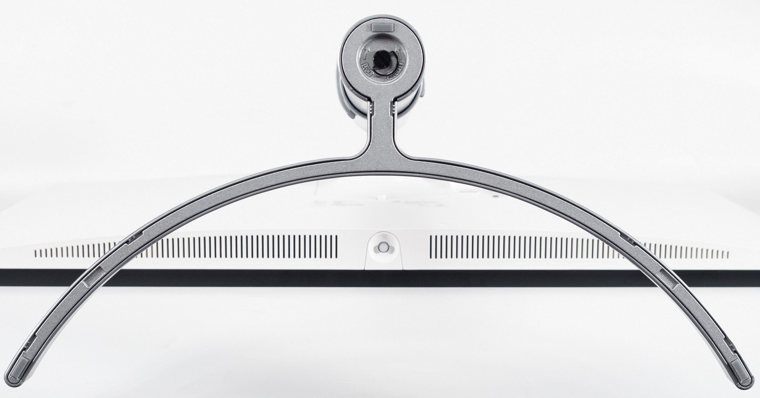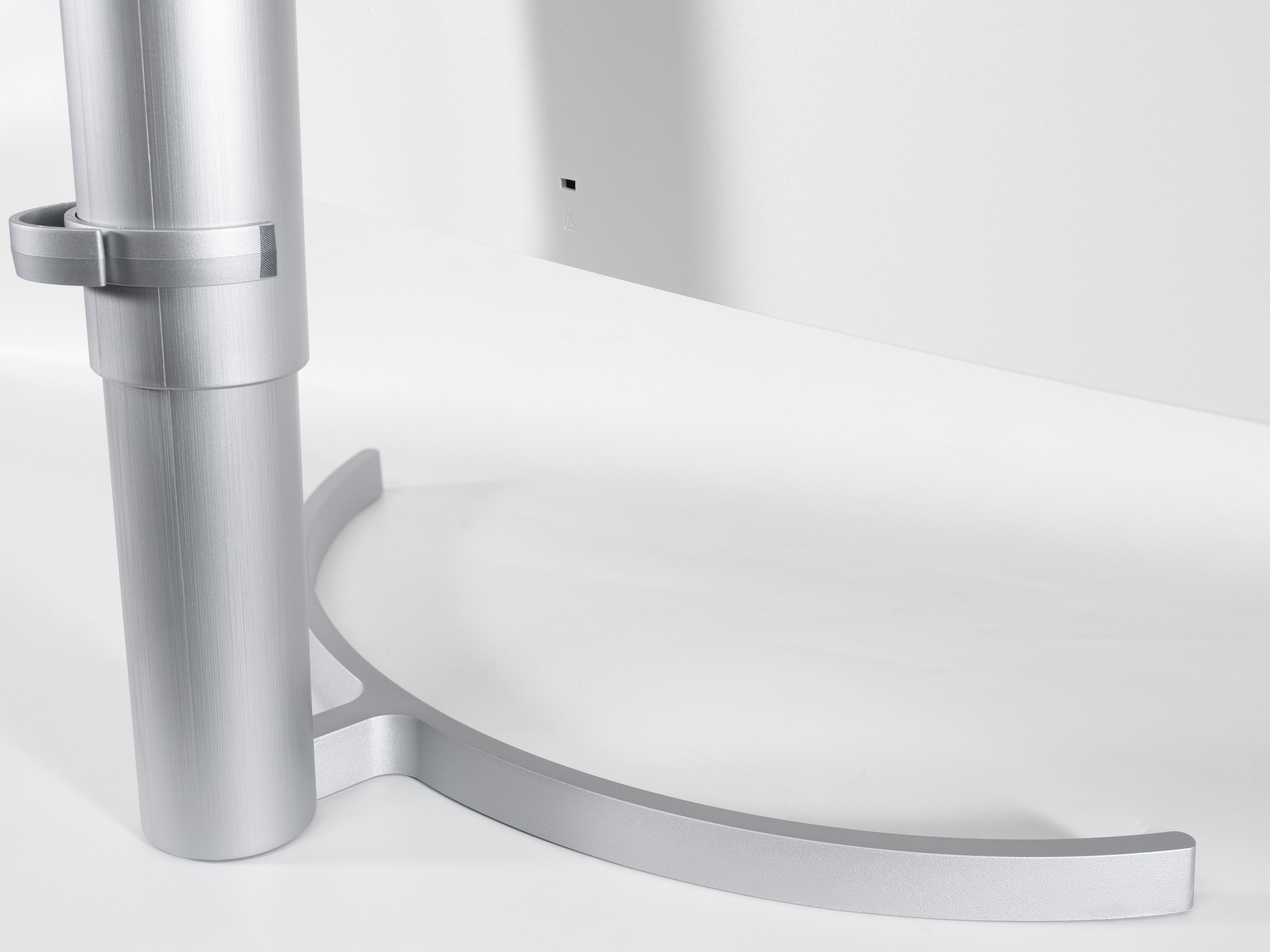 Основание подставки выполнено из металла, а для сцепления с рабочей поверхностью используется всего три резиновых ножки. Все крепёжные элементы выполнены из металла, даже те, что покрашены в белый цвет. Устойчивость конструкции не вызывают нареканий, но сама панель содрогается от любого прикосновения и продолжает колебательное движение ещё несколько секунд.