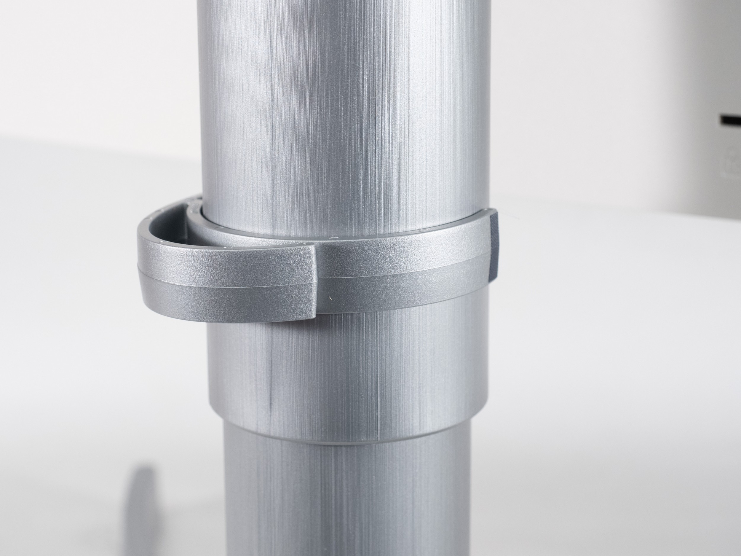Внешние поверхности центральной стойки выполнены очень грубо из не самого качественного пластика, а средняя по размерам алюминиевая подставка – единственный металлический элемент, не прикрытый пластиком. Вопросов к её устойчивости не возникает, да и места она занимает не так много благодаря тонкости конструкции.