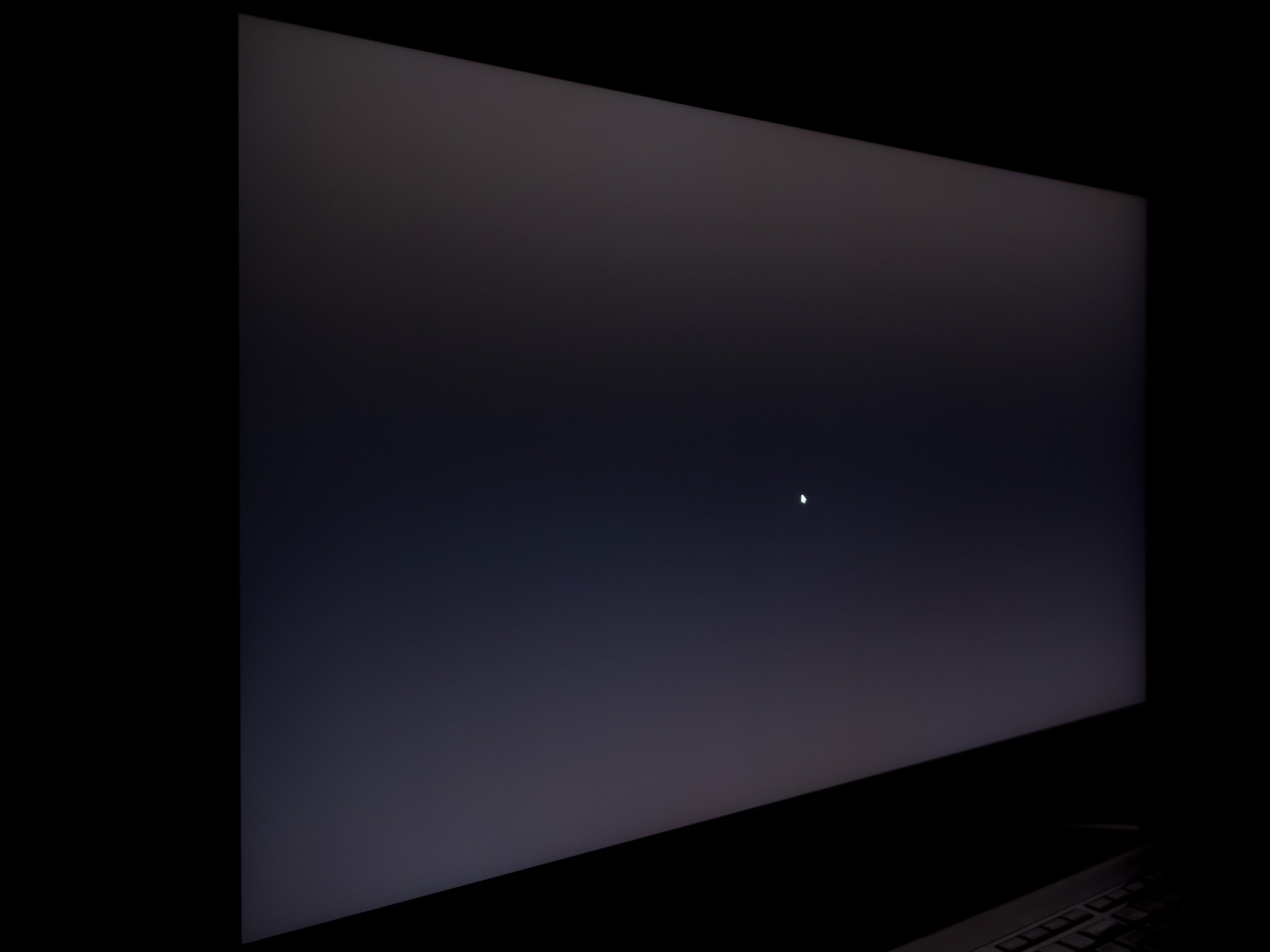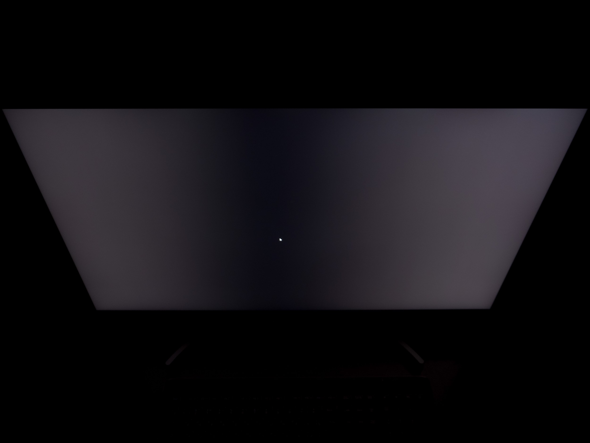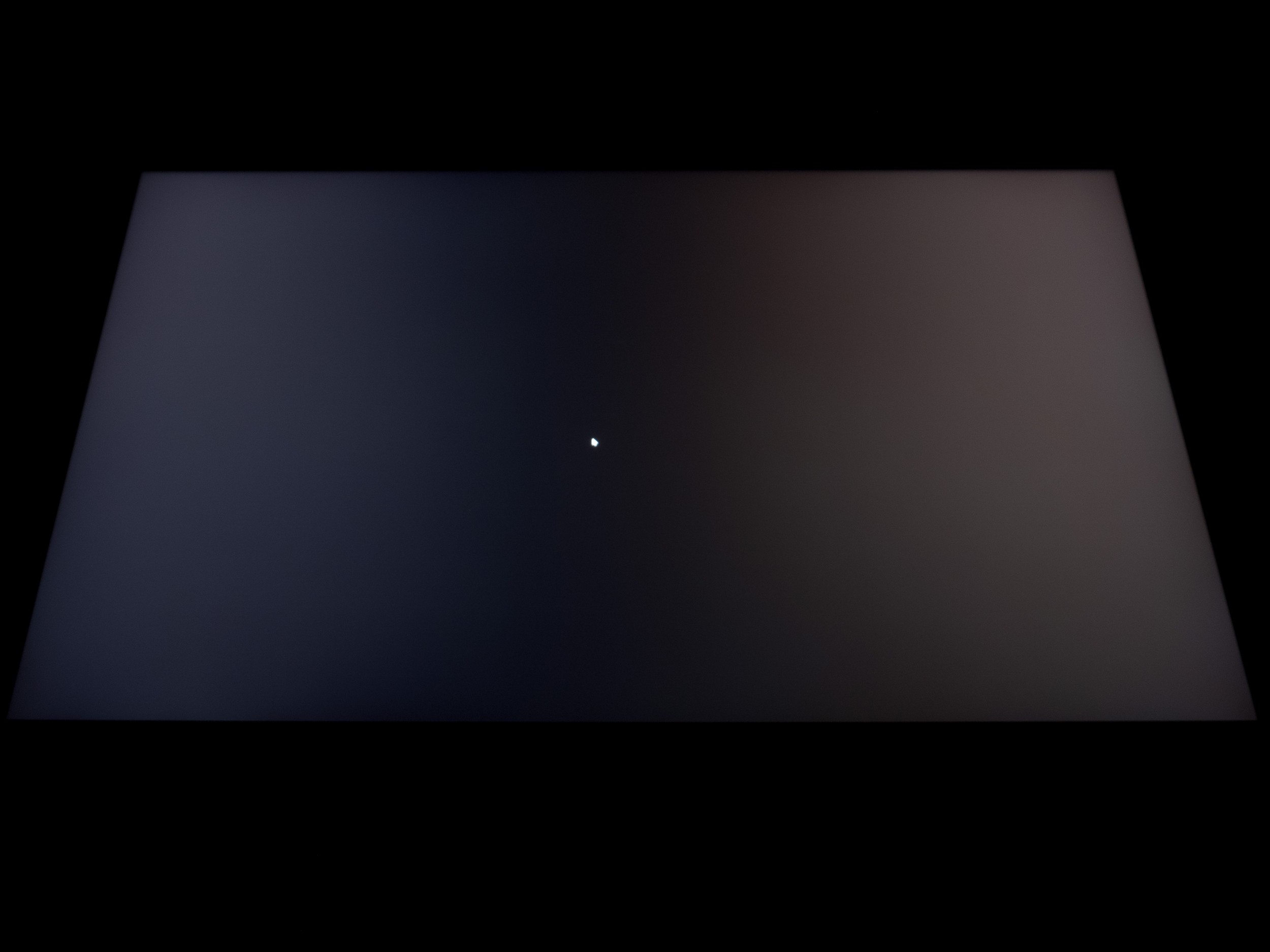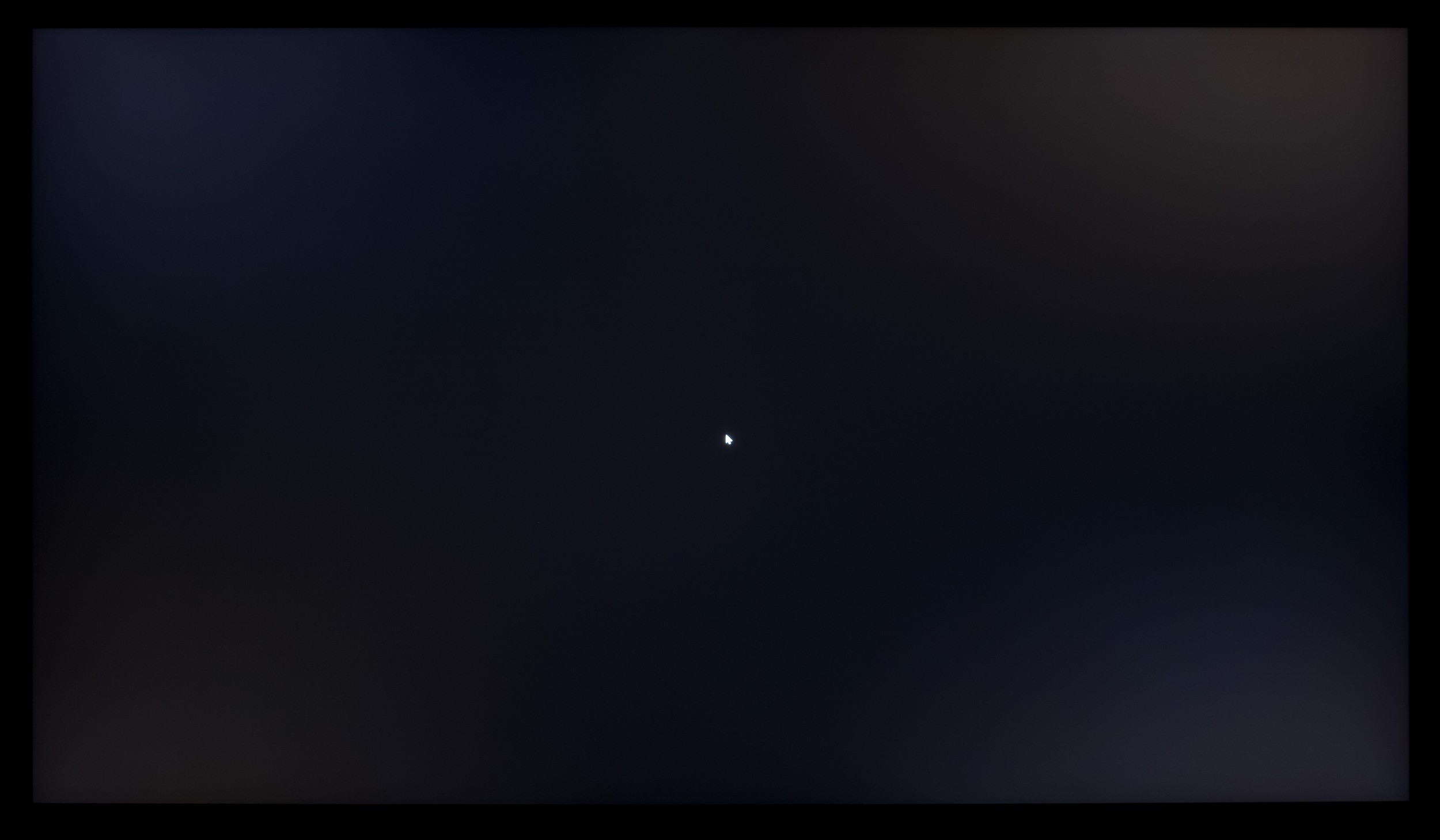 Теперь рассмотрим черный фон, оценив его «равномерность» по двум фотографиям, сделанным на разном отдалении от экрана (~70 см и 150 см), чтобы вы могли наглядно оценить влияние уже всем надоевшего Glow-эффекта и узнать реальную равномерность подсветки без его учёта.
