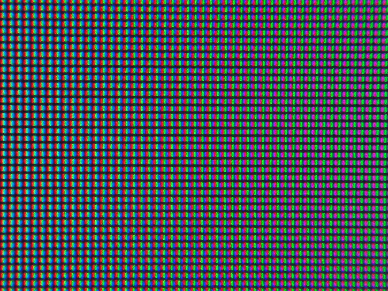В мониторе LG 32UN650-W применена IPS-матрица с полуматовой поверхностью, предназначенная для использования в «безрамочных» корпусах. Рассмотрим полученный макроснимок:
