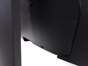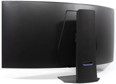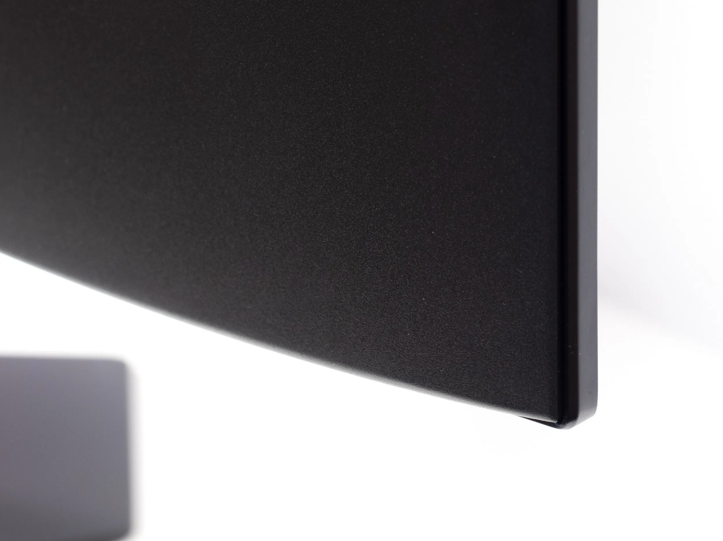 Из-за использования изогнутой панели производитель отказался в целях безопасности от ультратонкого корпуса — решение пускай и тоньше, чем некоторые изогнутые LCD, но по меркам OLED — достаточно габаритное. За пластиковой накладкой сзади прячется вся управляющая электроника, интерфейсы подключения и элементы быстросъёмного крепления подставки или VESA-совместимого кронштейна с крепежом стандарта 100х100 мм.