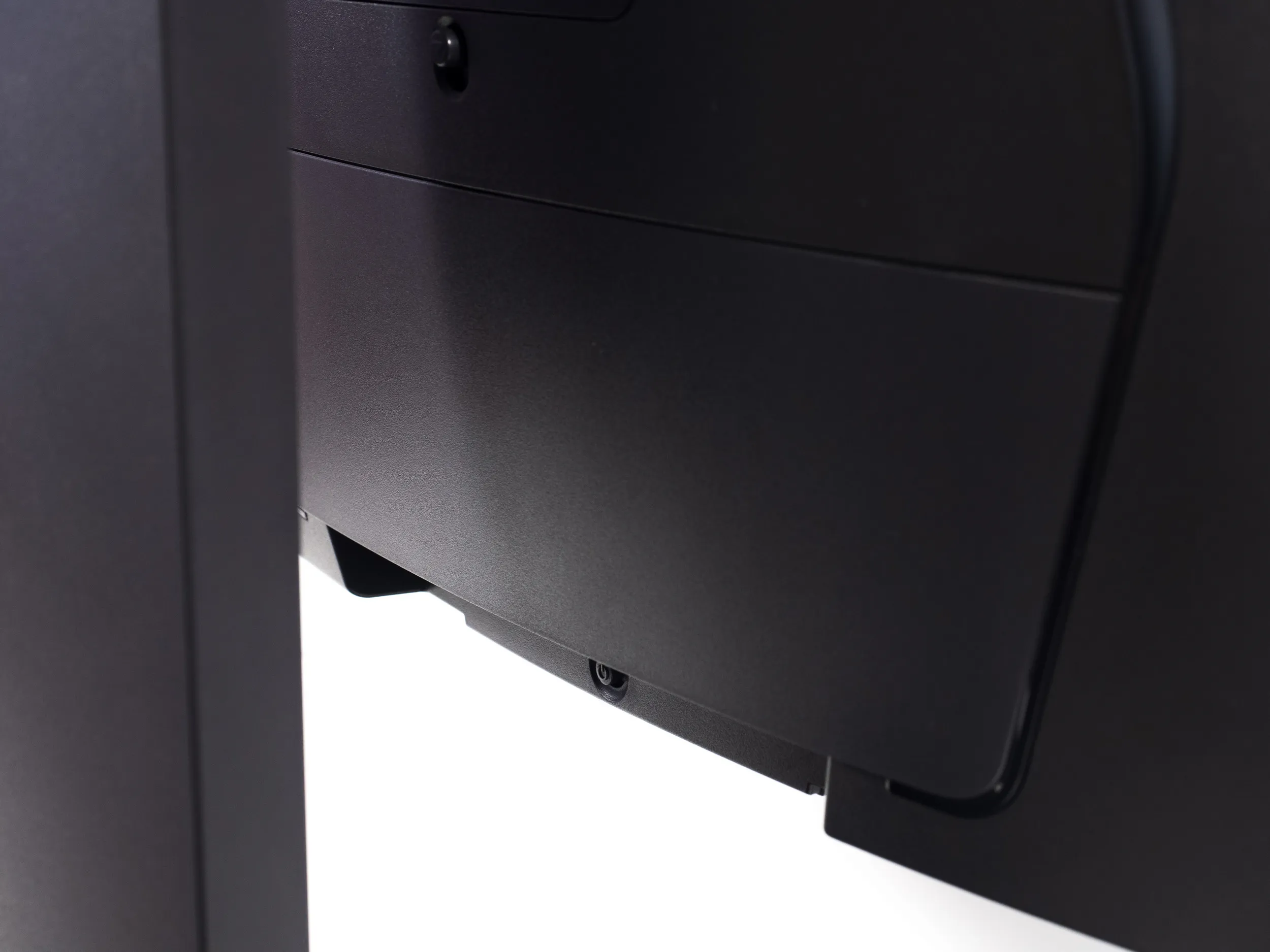 Дополнительно для системы прокладки кабелей используется пластиковая крышка, закрывающая прямой доступ к интерфейсным разъёмам. Эффективность её применения небольшая, но зато она заканчивает визуальный образ монитора.