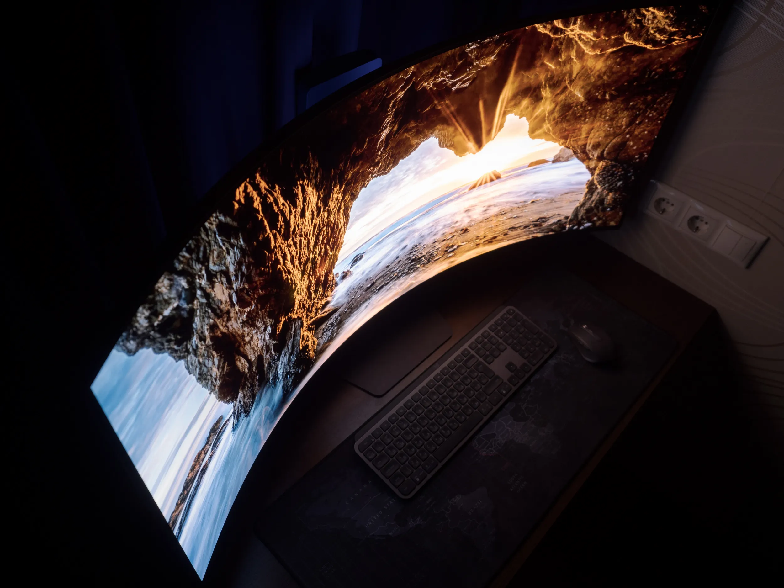 Сильный изгиб экрана создает эффект максимального погружения в происходящее на экране. Монитор как будто окутывает пользователя, особенно если работать на расстоянии порядка 70-80 см от центра экрана.